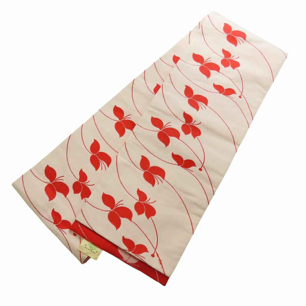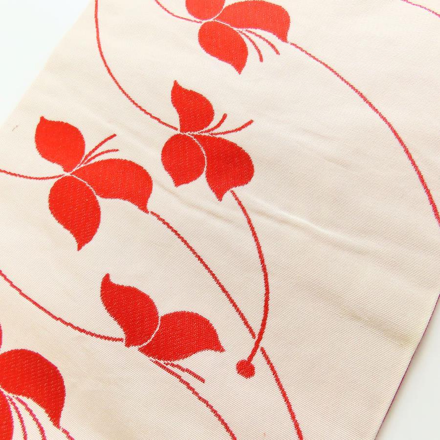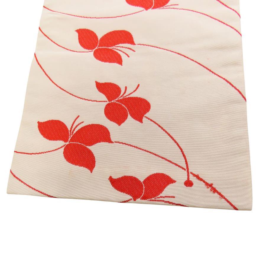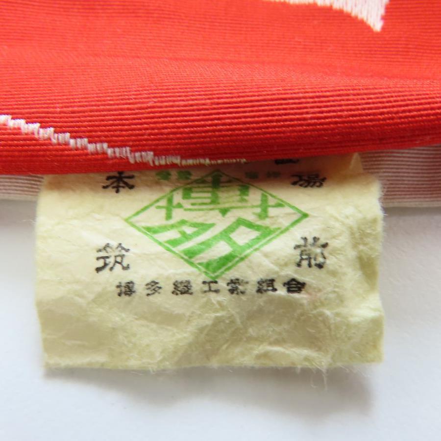 | 品名 | 【中古】 半幅帯 正絹(金銀糸除く) ピンクベージュ系 レッド 本場筑前博多織 娘町帯 レディース 女性 |