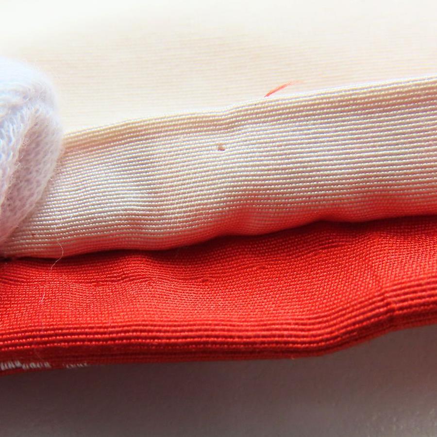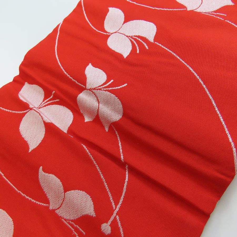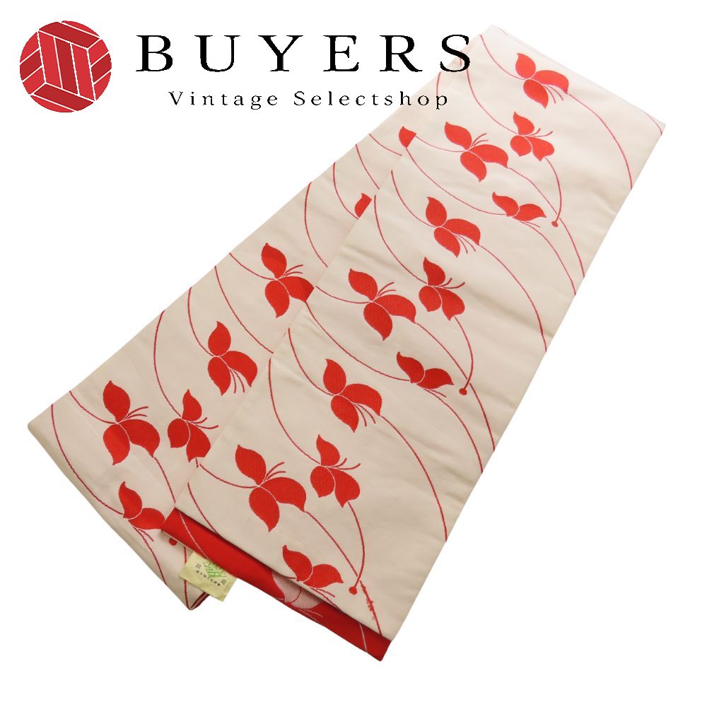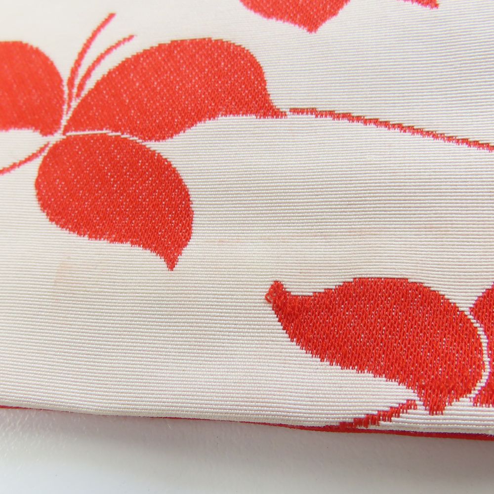 | 品名 | 【中古】 半幅帯 正絹(金銀糸除く) ピンクベージュ系 レッド 本場筑前博多織 娘町帯 レディース 女性 |