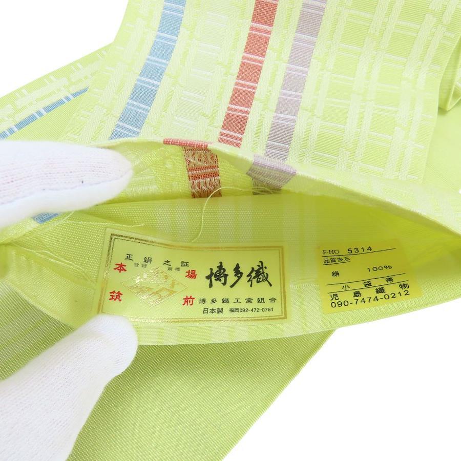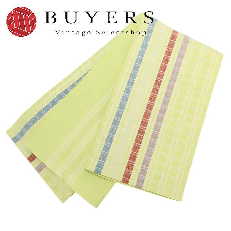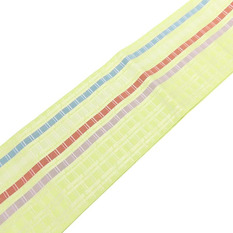 | 品名 | 【中古】 半幅帯 正絹(金銀糸除く) イエロー系 マルチカラー 縦縞柄 レディース 女性 |