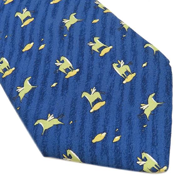 エルメス HERMES 総柄 9cm ネクタイ シルク ネイビー ペガサス柄 - メンズ定番 人気 美品 【中古】