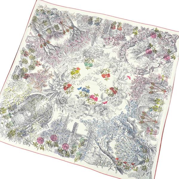 エルメス HERMES ショール カレ140 CARRE カレジェアン カレ140 ストール カシミヤ シルク ベージュ×マルチカラー 【Le Jardin de Leila /レイラの庭】 - レディース定番 人気 美品 【中古】