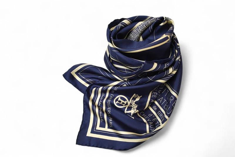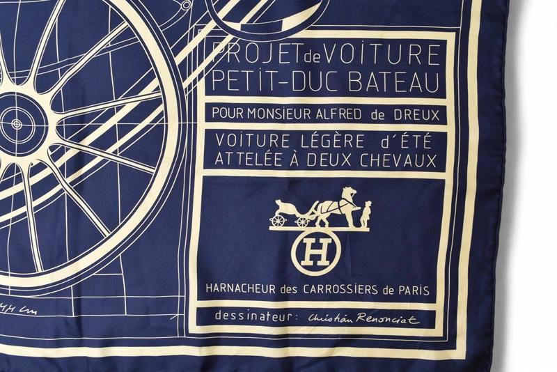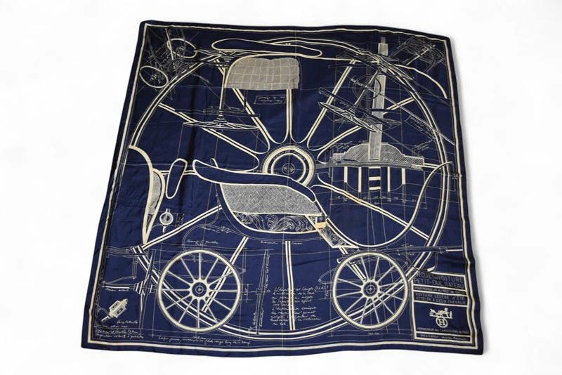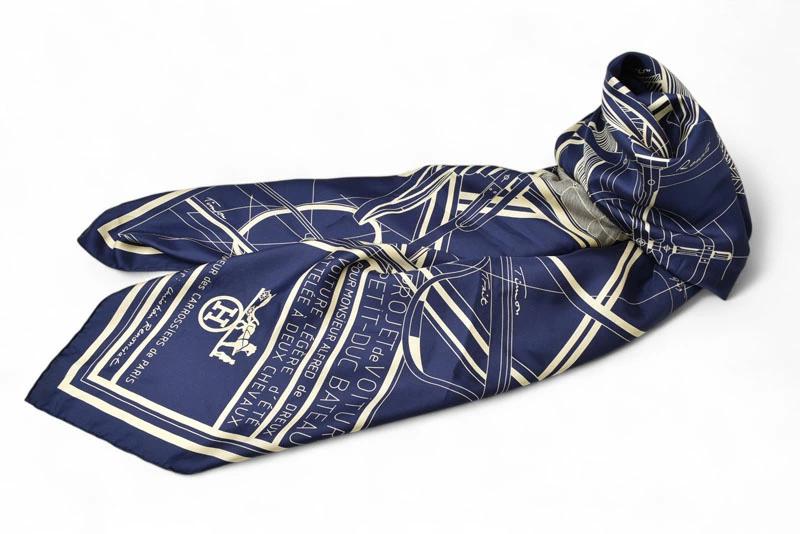 Pre-owned Hermès silk scarf/shawl, size 140, Petit Duc, navy.