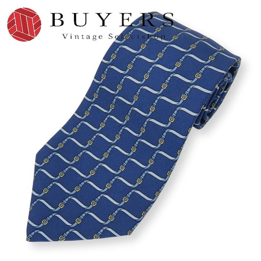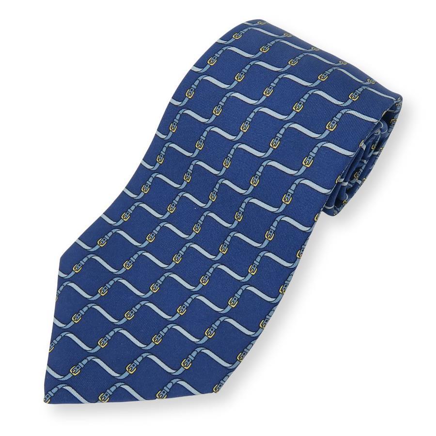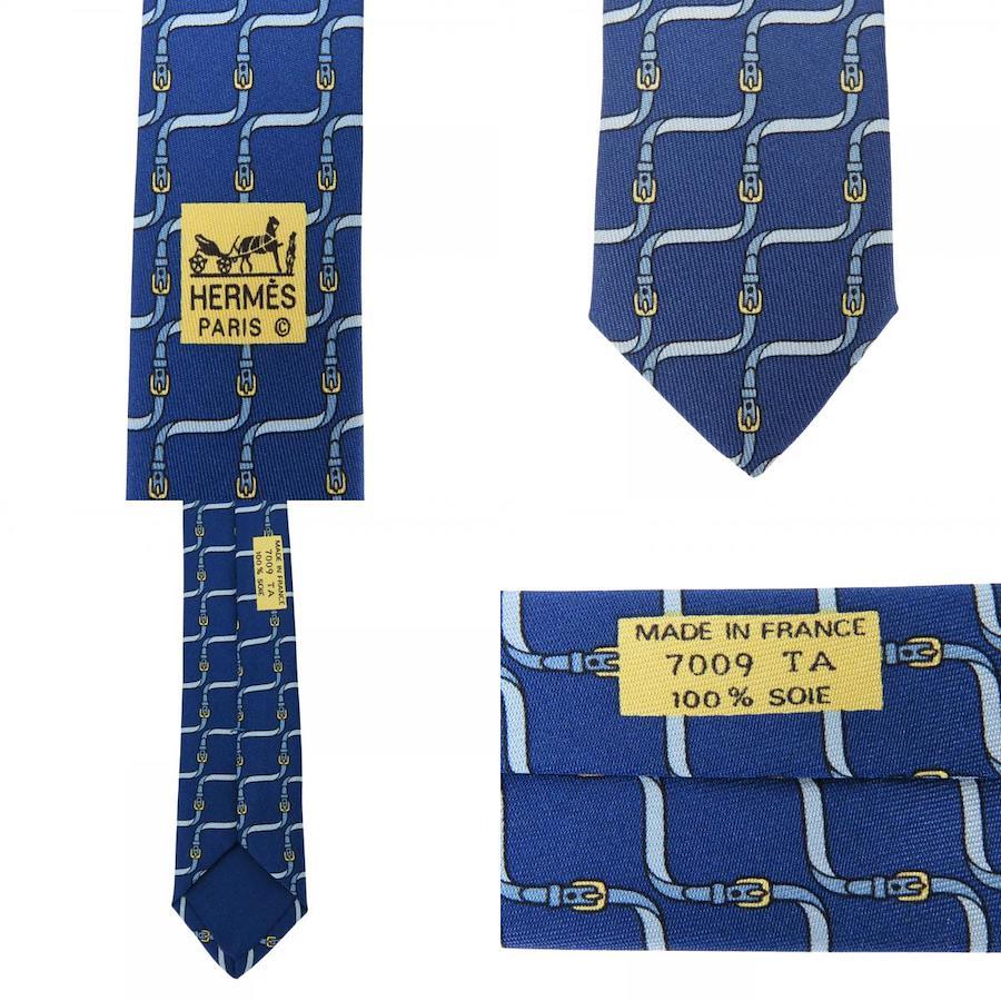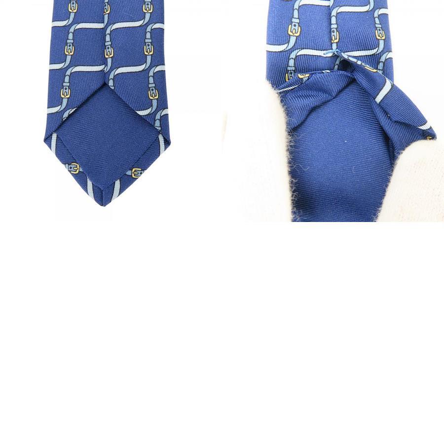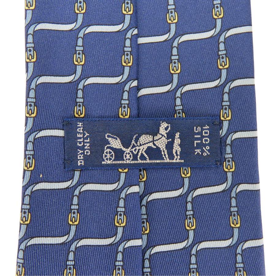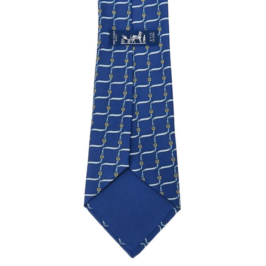 Pre-owned Hermès tie, belt pattern, silk, blue, for men's business suits.
