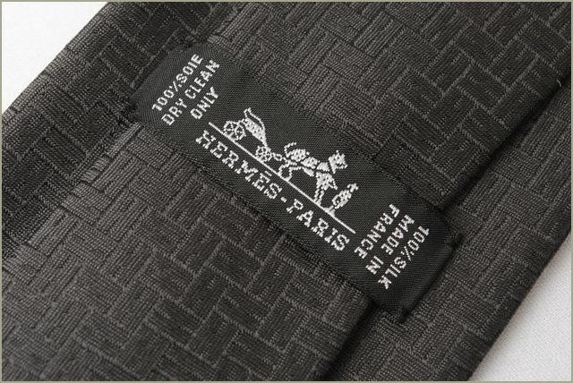 エルメス ネクタイ H柄HERMES ダークグレー/ブラック Hロゴ シルク100%