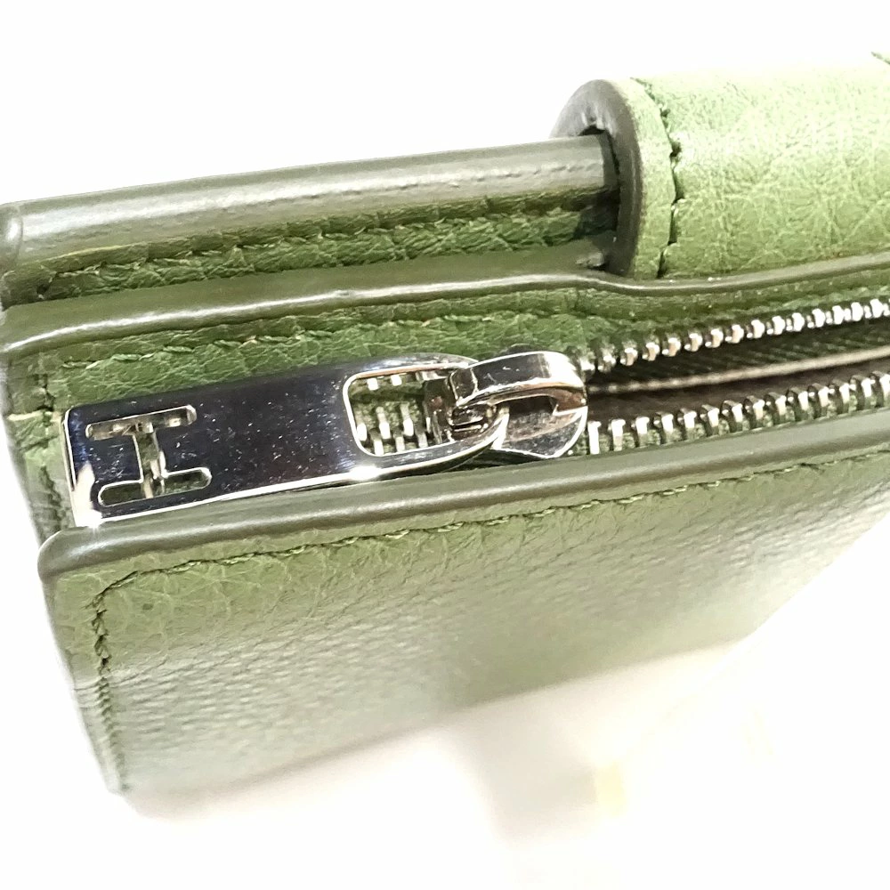 [Pre-owned] HIROFU Bi-fold Compact Wallet, Leather, Green, Women's /181616