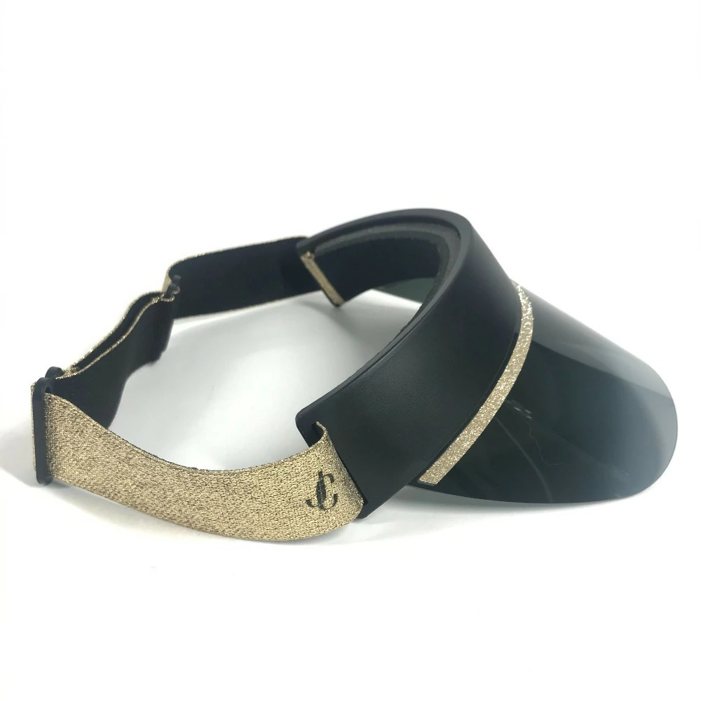 Pre-owned JIMMY CHOO Jimmy Choo logo glitter hat, plastic sun visor, gold, for women.