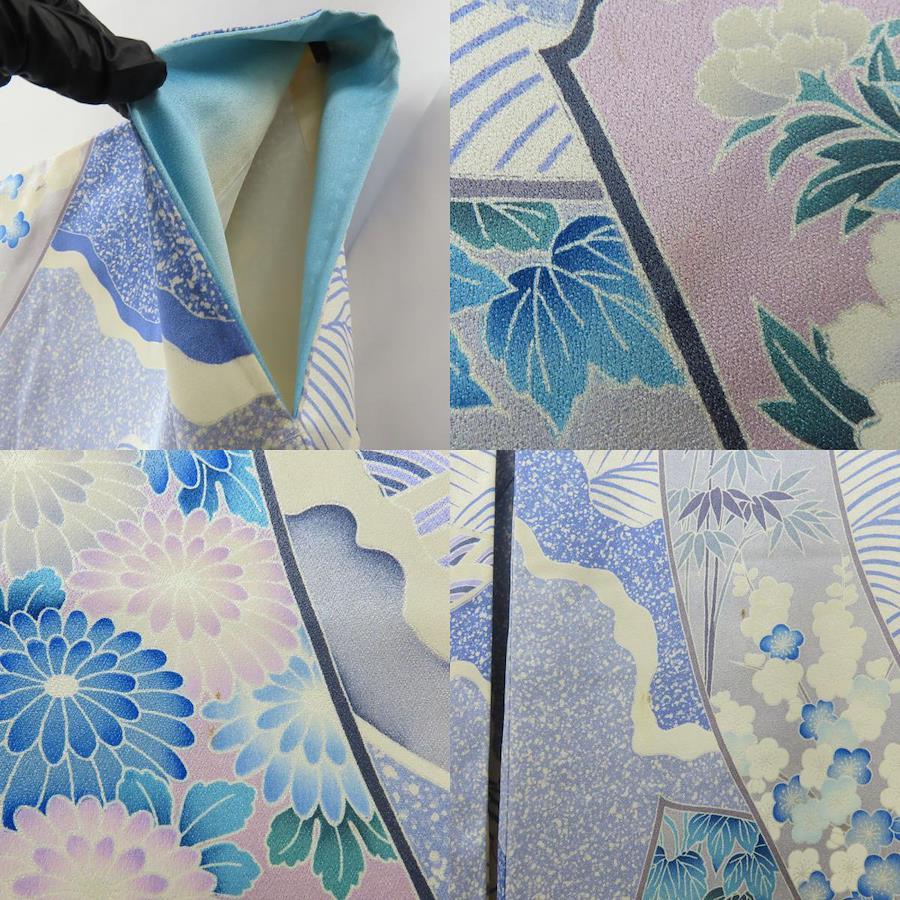 | 品名 | 【中古】 振袖 襦袢セット 正絹 ブルー系 ホワイト パープル 草花柄 風景柄 フォーマル レディース 女性 |