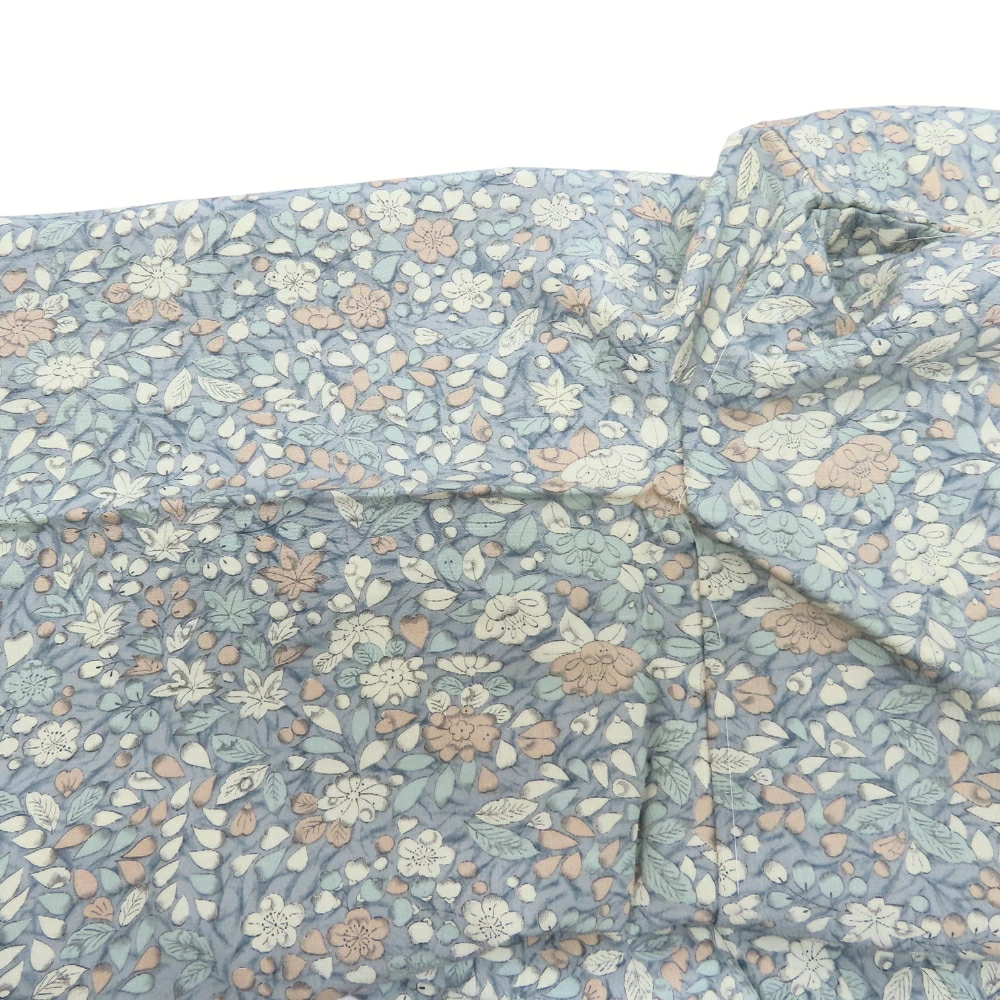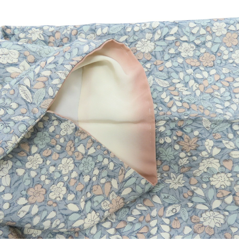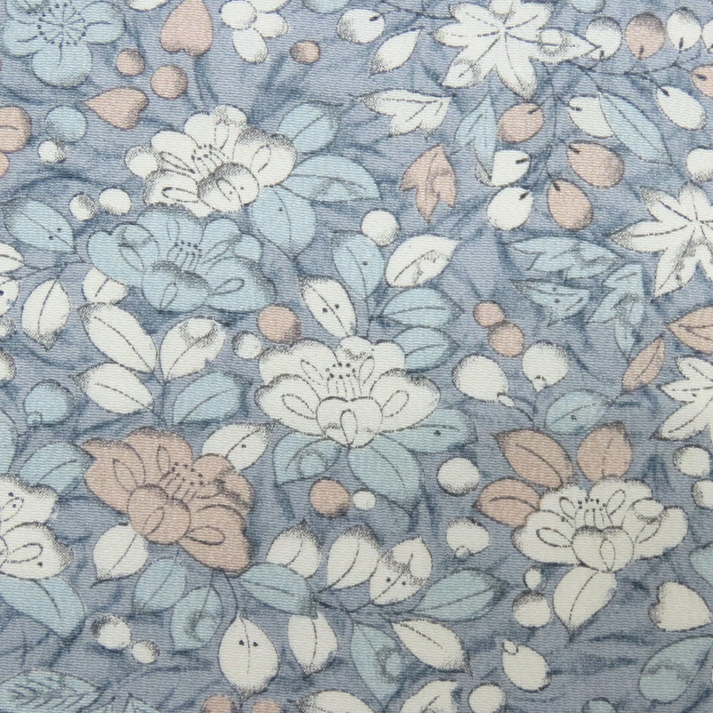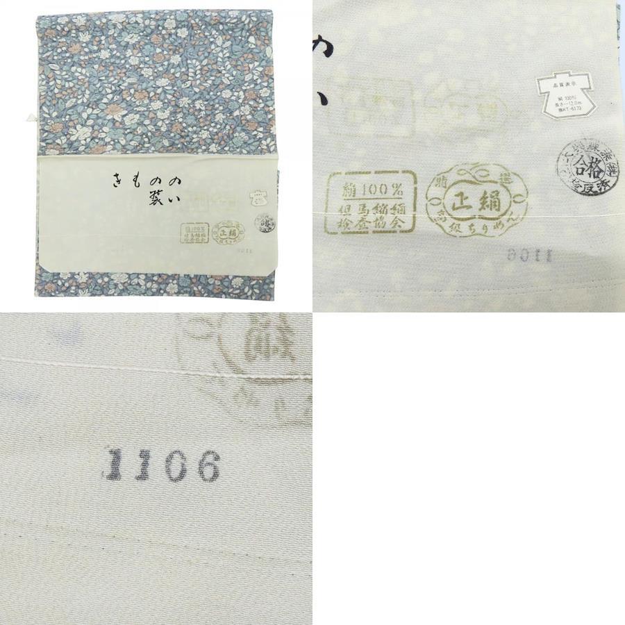 品名【中古】 小紋 高級ちりめん しつけ糸あり 正絹 グレー系 くすみブルー くすみピンク ホワイト 但馬縮緬 草花柄 レディース 女性
