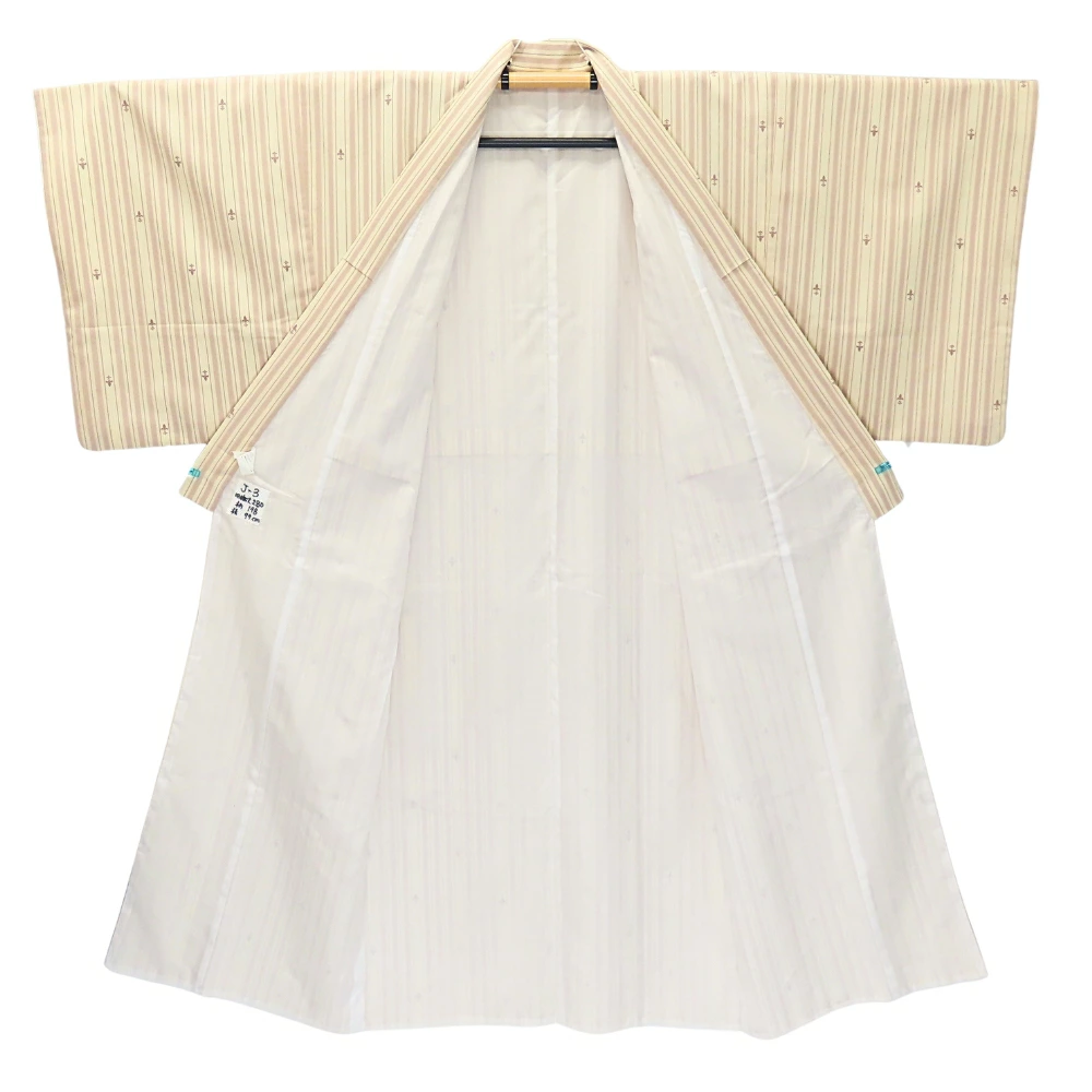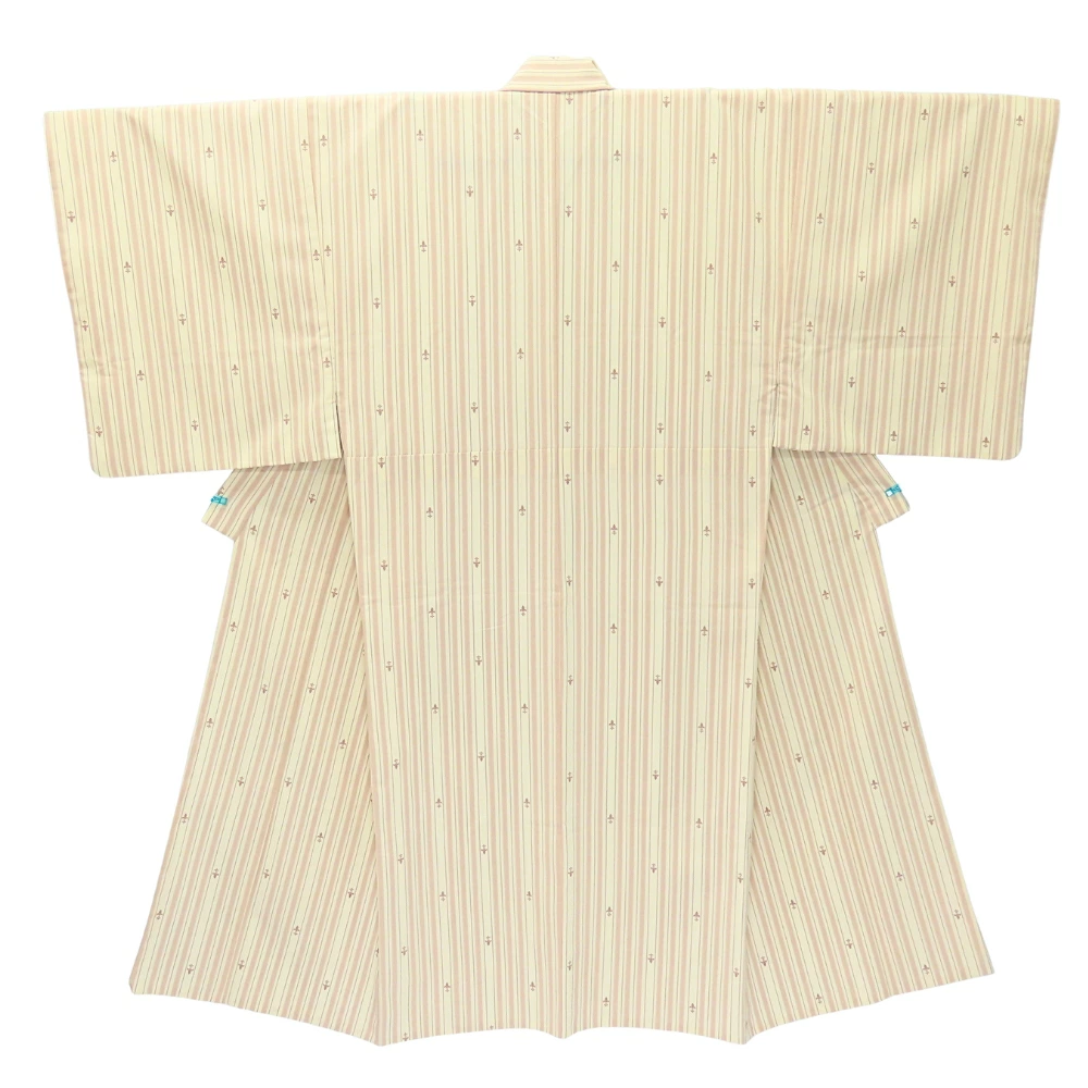 | 品名 | 【中古】 小紋 ポリエステル クリーム系 ベージュ系 縦縞模様 ユリの紋章 カジュアル メンズ 男性 |