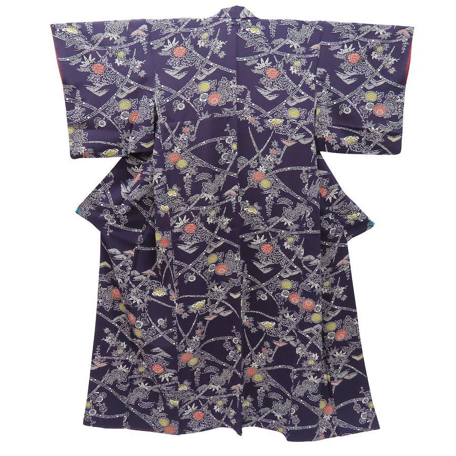 | 品名 | 【中古】 小紋 正絹(金銀糸除く) 紫 竹草花 モダン お洒落 レディース 女性 |