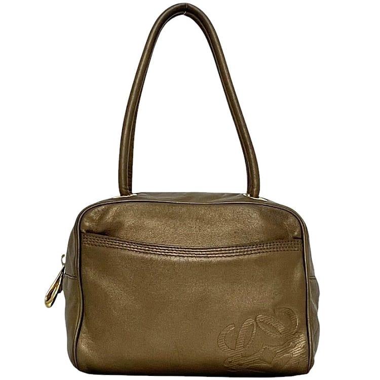 ☆---- 商品について ----☆ロエベ ハンドバッグ ec-24062 ゴールド ブラウン アナグラム 美品 ナッパレザー 中古 LOEWE ヴィンテージ 金色 ロゴ ファスナー ミニバッグ レディース 女性 定番 人気 ソフトレザー バッグ ミニボストン ブランド 本物 鑑定済み