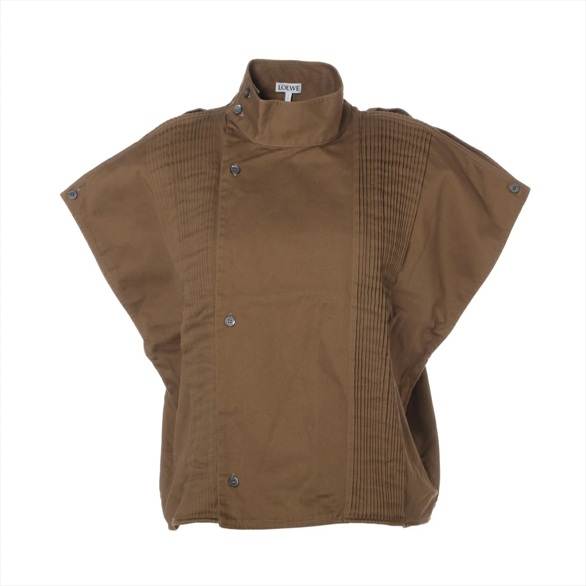 ロエベ LOEWE ロエベ サイドオープン スタンドカラー ピンタック ト コットン 36 タンクトップ カーキ WS16131 【中古】
