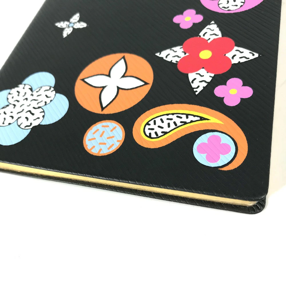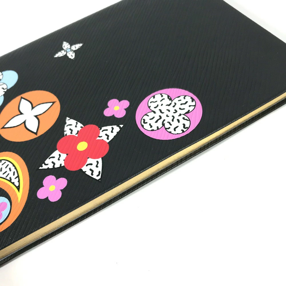 Pre-owned Louis Vuitton Epi Caix Eclemence floral design stationery memo pad notebook in Epi leather, black, unused.