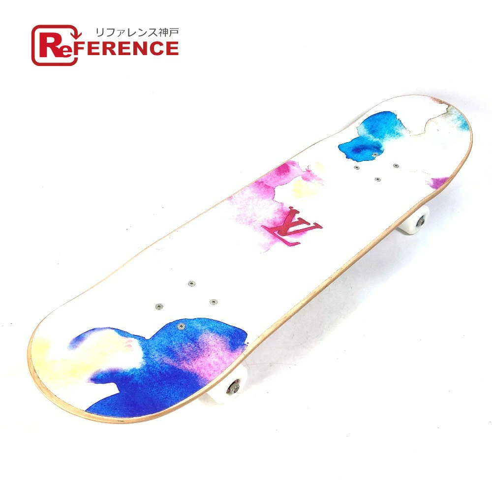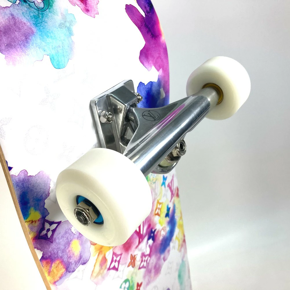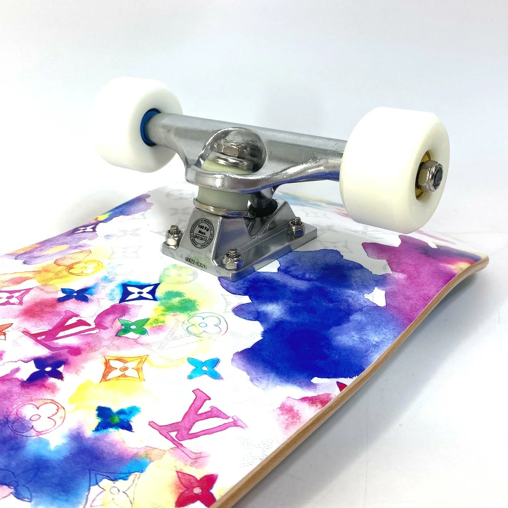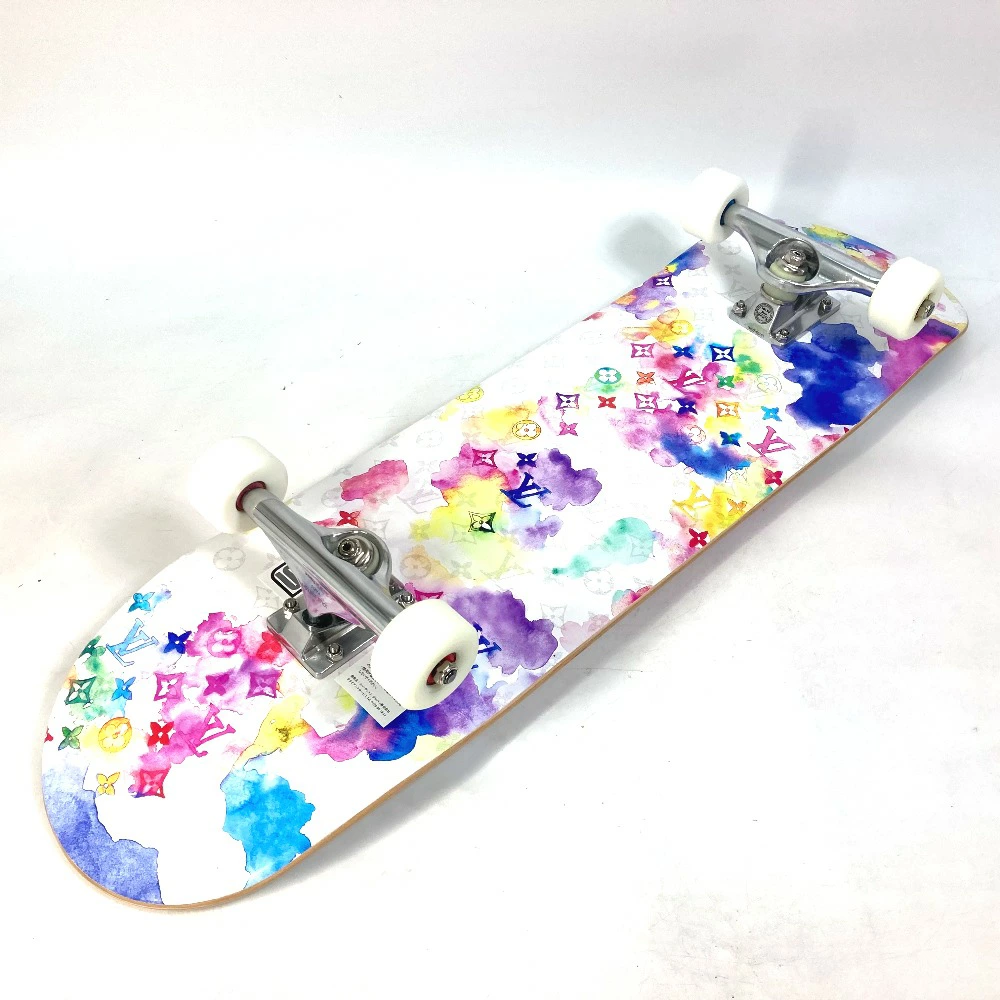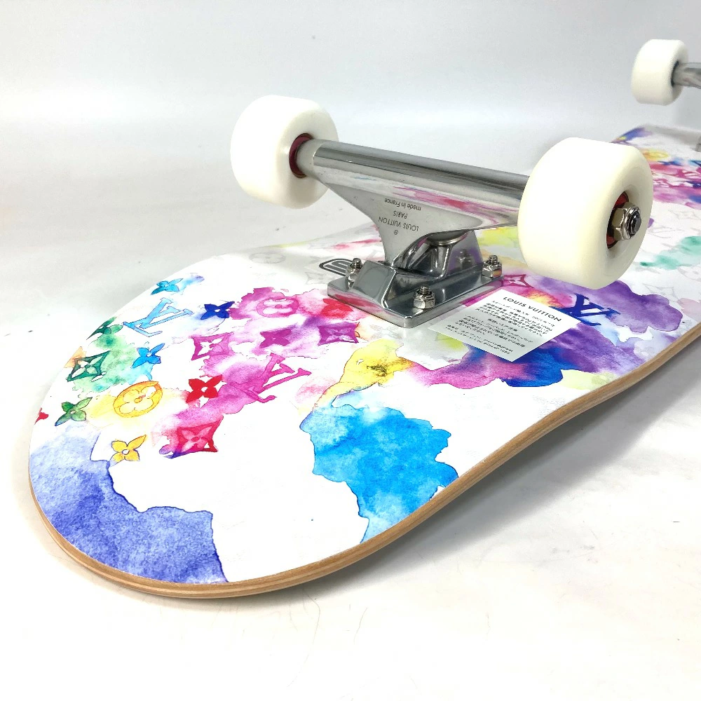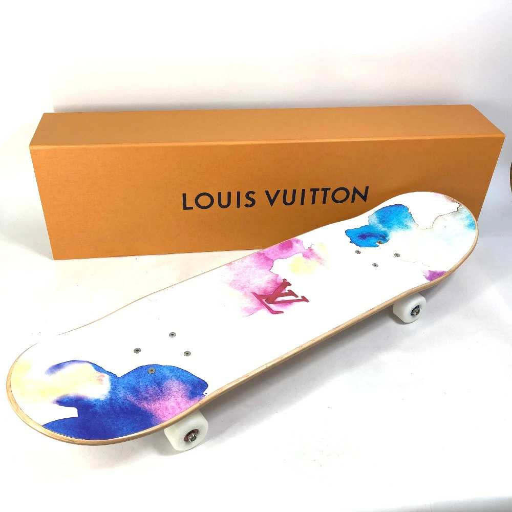 Pre-owned LOUIS VUITTON GI0622 Monogram Watercolor Skateboard, Men's, White, Unused, Wooden Skateboard, Interior Decoration, Skateboard, Object.