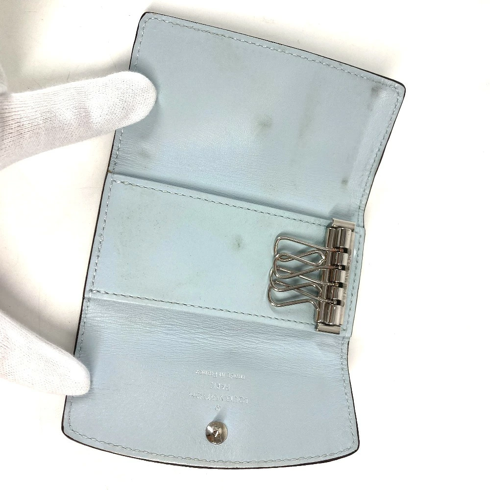Pre-owned Louis Vuitton Monogram Mahina Multicle 4 Key Case (M81236) in Monogram Mahina Leather with Blue Nuage, Unisex.