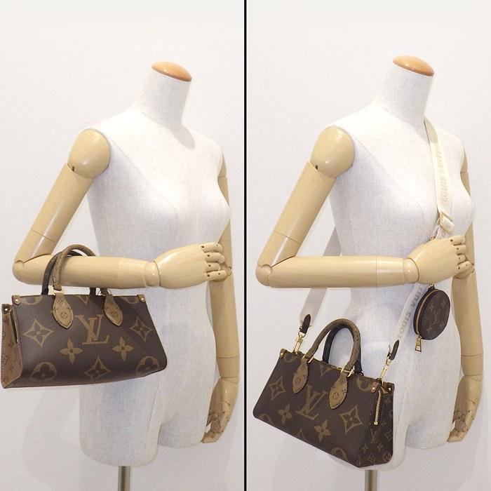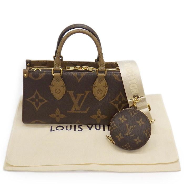 ■商品名オンザゴー EW M46653 モノグラム・リバース ダークブラウン/ベージュ PVCコーティング モノグラムジャイアントキャンバス ゴールド金具 【中古】