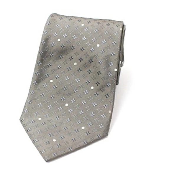 状態さらさらとした手触りのシルクネクタイです。グレーにモノグラム柄とドット柄がストライプに並んだスタイリッシュなデザインです。