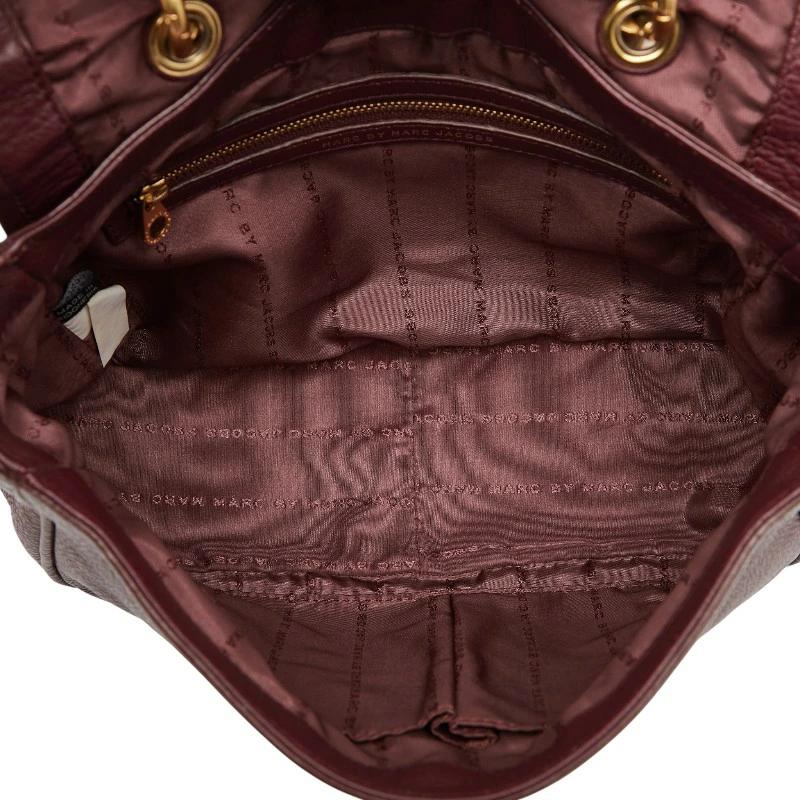 Pre-owned Marc Jacobs logo handbag/shoulder bag in wine red and gold leather for women.