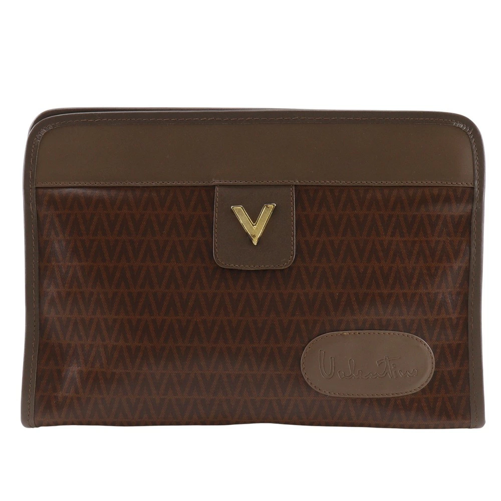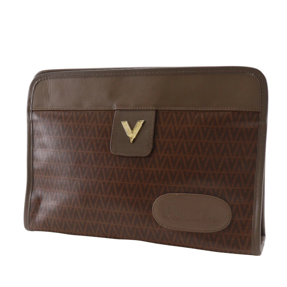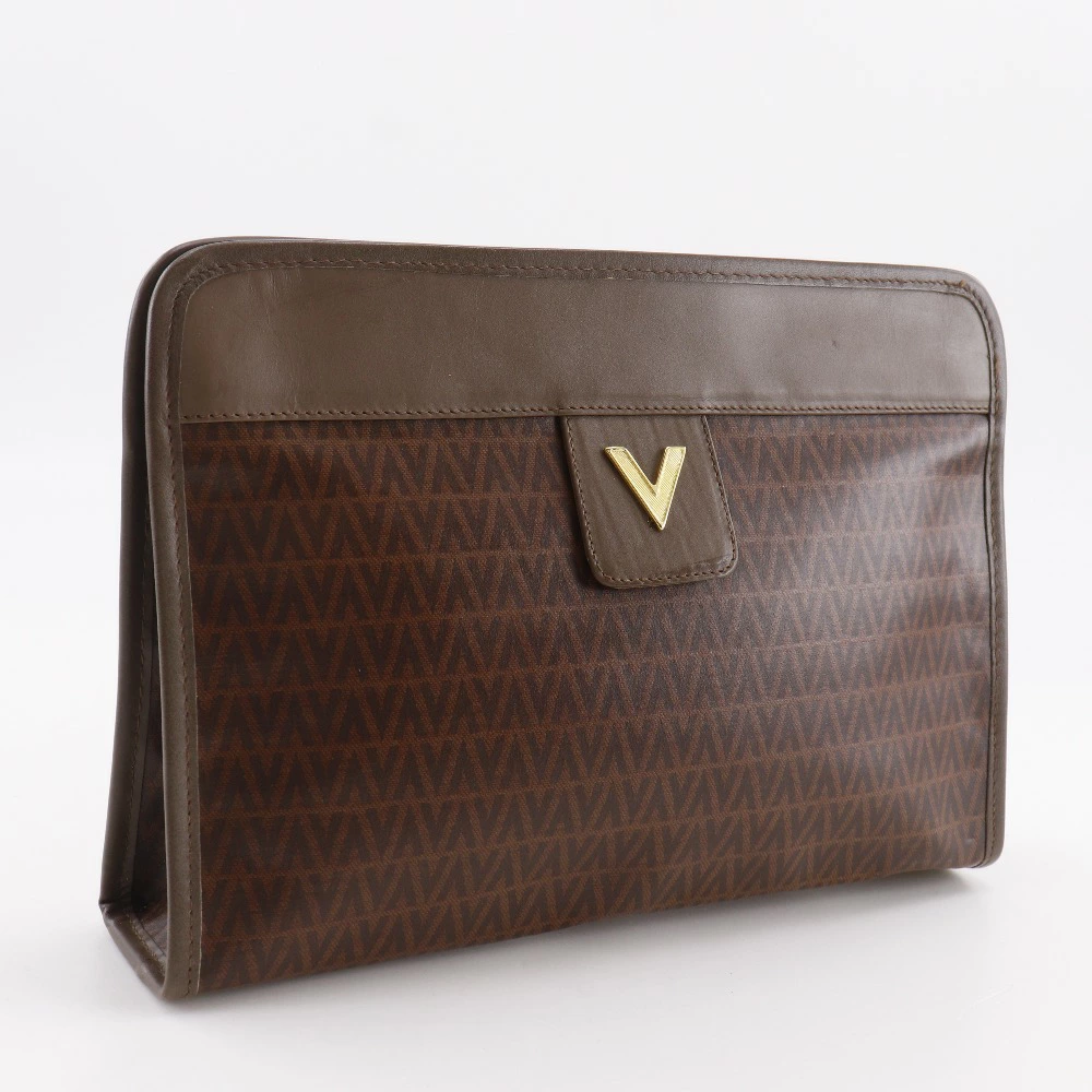 Pre-owned Mario Valentino V logo PVC second bag, brown, A5 size, clasp purse, V logo, unisex.