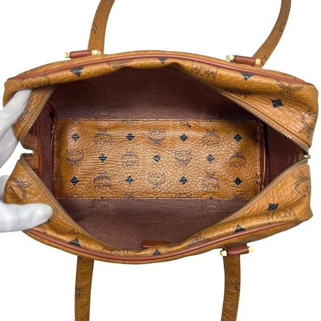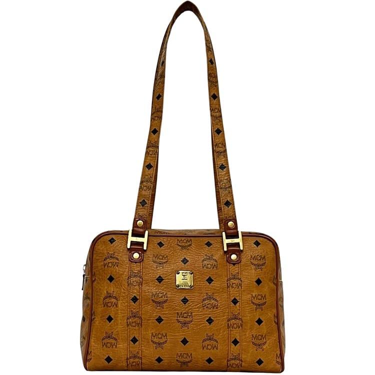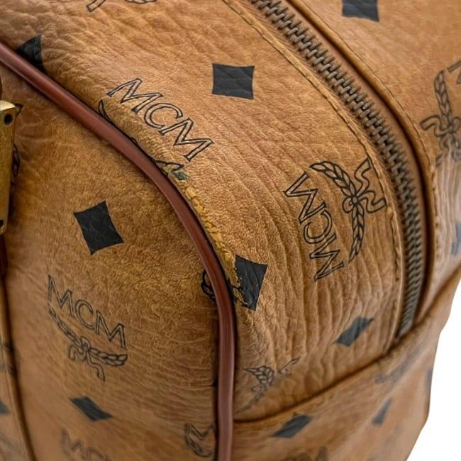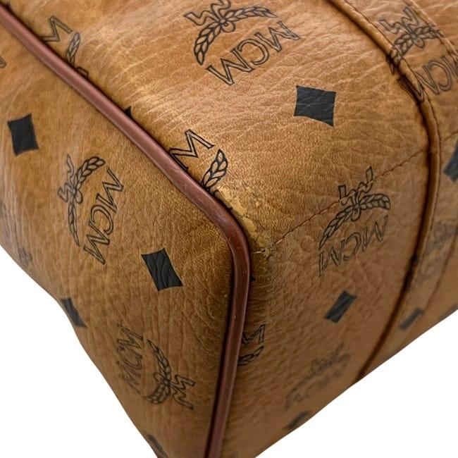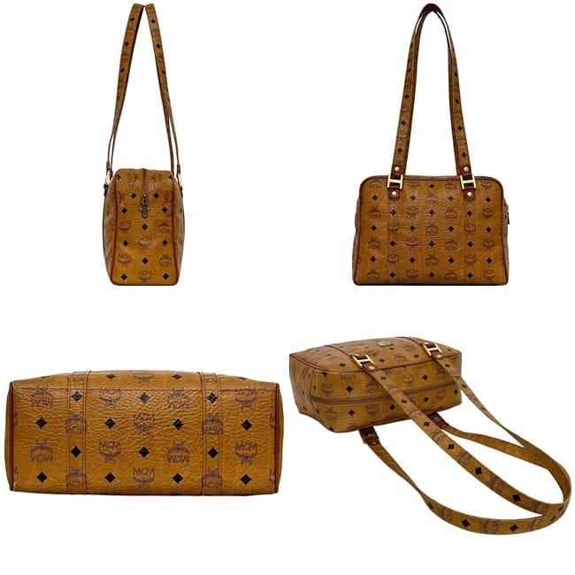 ☆---- 商品について ----☆エムシーエム ショルダーバッグ ec-24573 ベージュ トートバッグ PVC レザー 中古 MCM 肩掛け ボストン ハンドバッグ ロゴ 総柄 ファスナー レディース メンズ 定番 人気 ヴィンテージ 茶色 ロゴ金具 ゴールド金具 ショルダートート ブランド 本物 鑑定済み