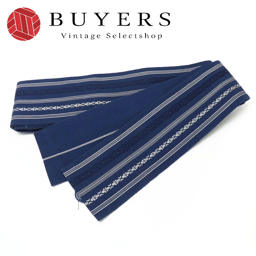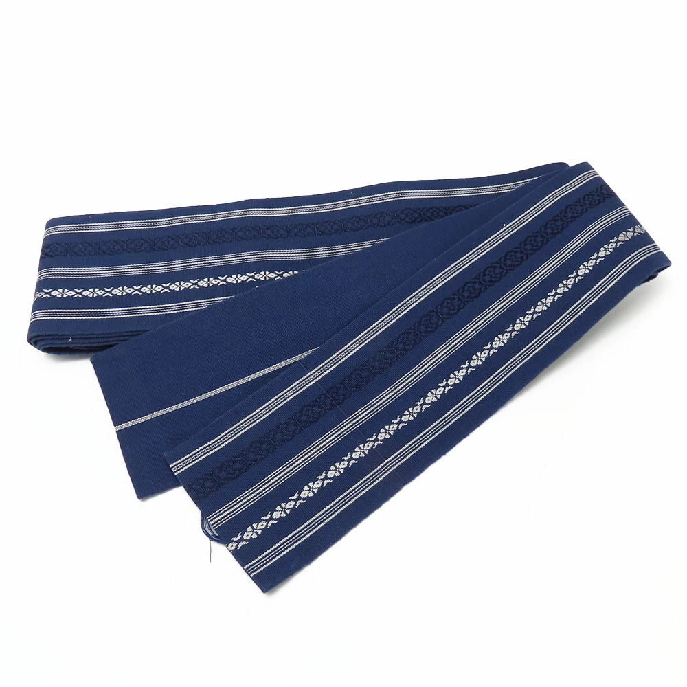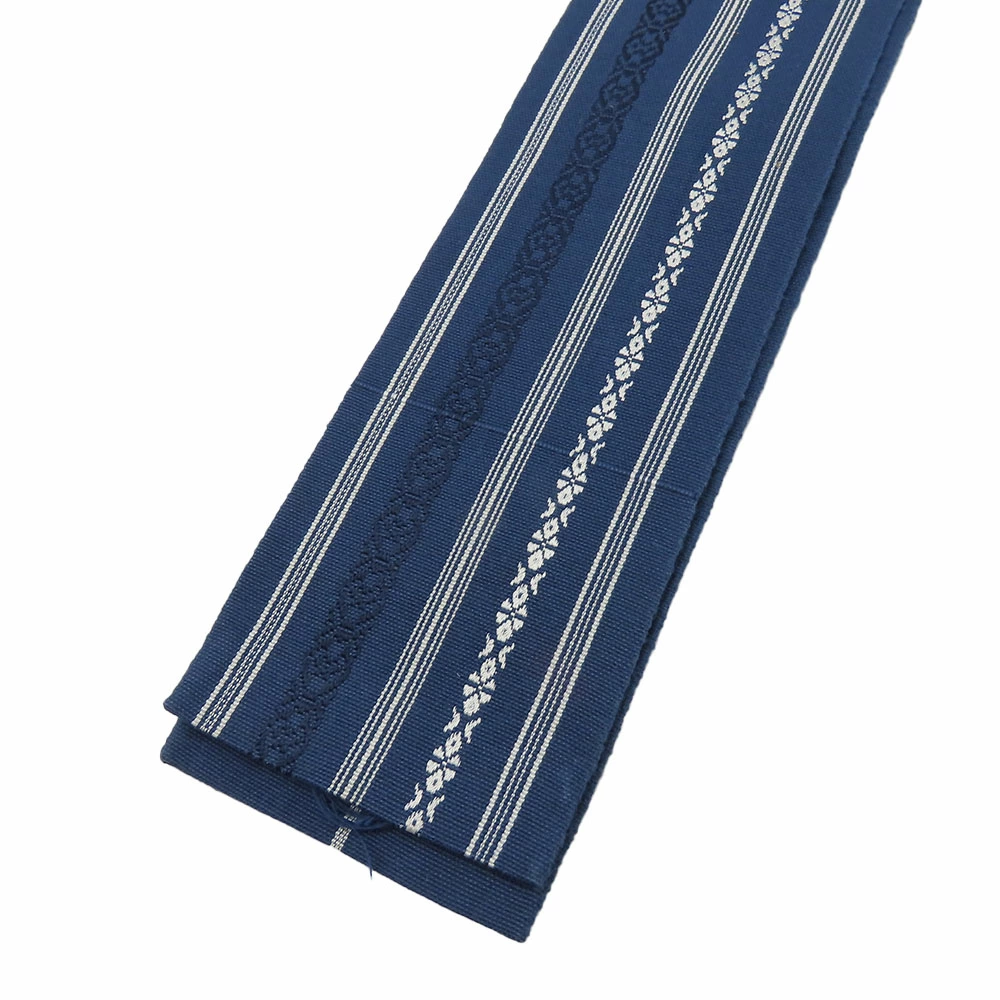 品名【中古】 男帯 綿 ネイビー 白 黒 献上柄 モダン メンズ 男性