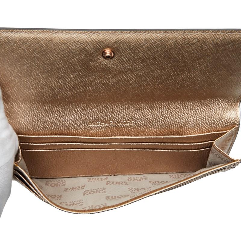 Pre-owned Michael Kors logo long wallet in gold leather for women.