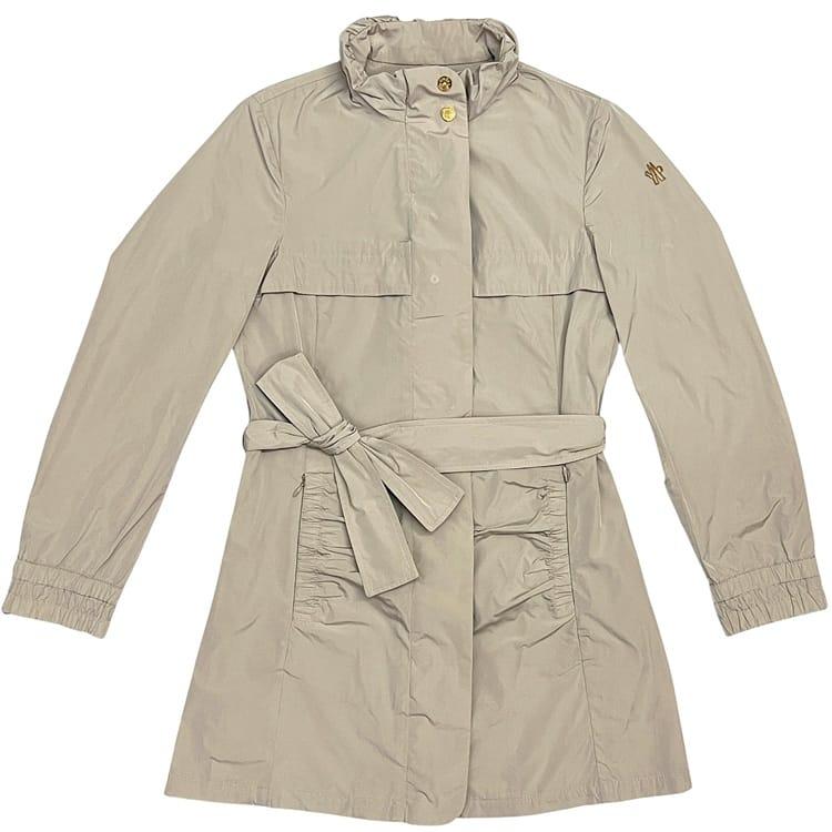 ☆---- 商品について ----☆モンクレール コート ec-24399 ベージュグレー RN116347 サイズ1 クリーニング済み 美品 ポリエステル 100% 中古 MONCLER ロング ファスナー ベルト付き レディース フードなし アパレル 衣類 長袖 アウター 薄手 ロゴ金具 ブランド 本物 鑑定済み