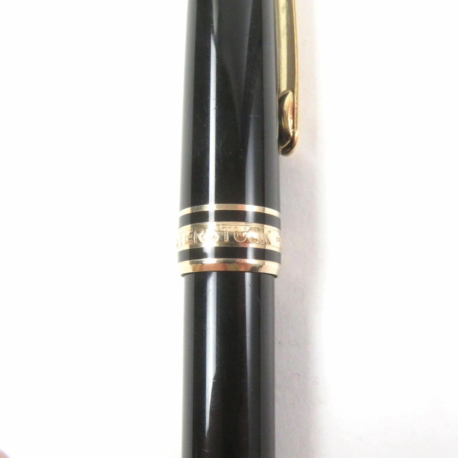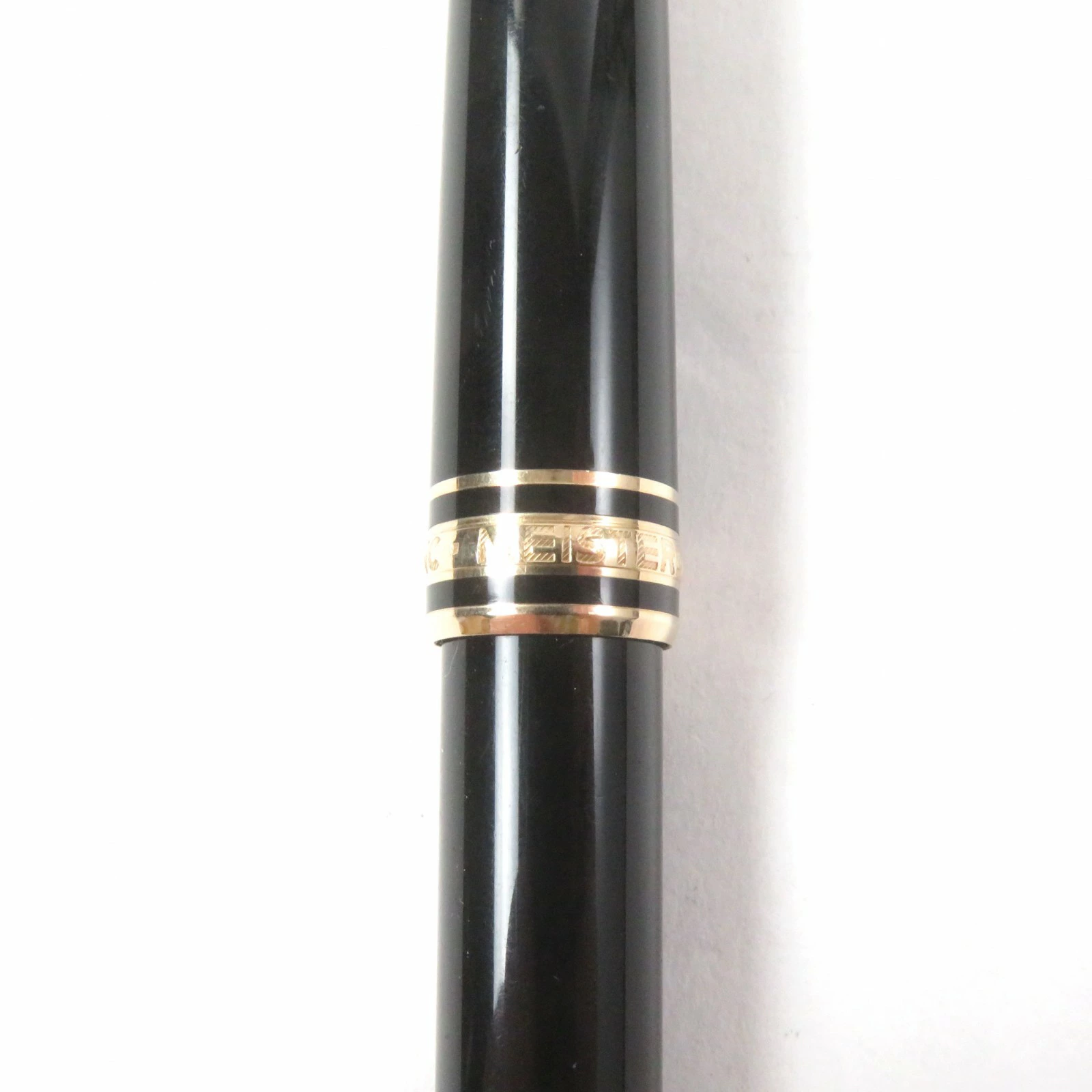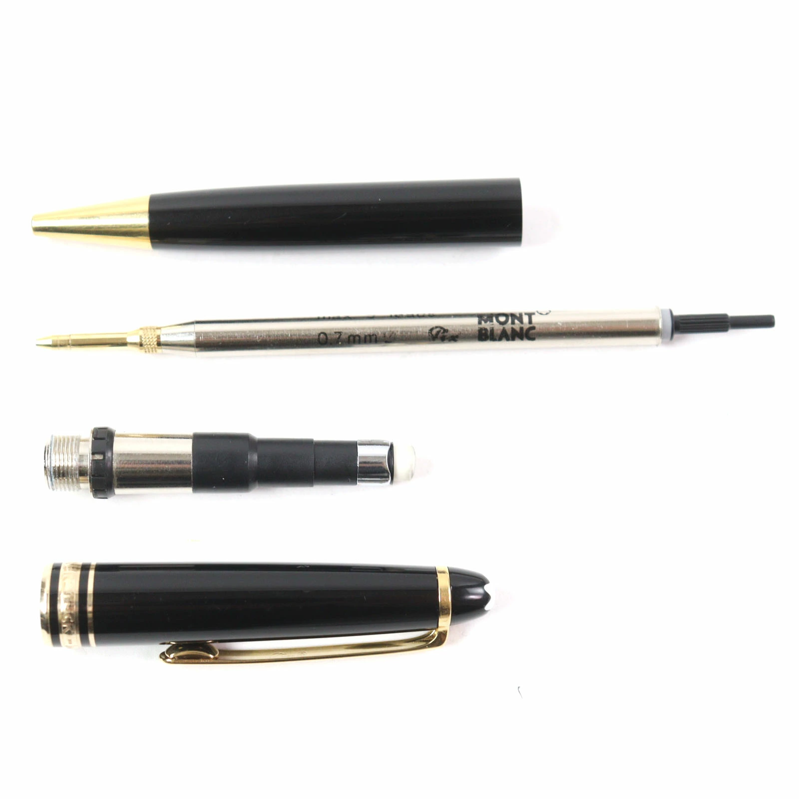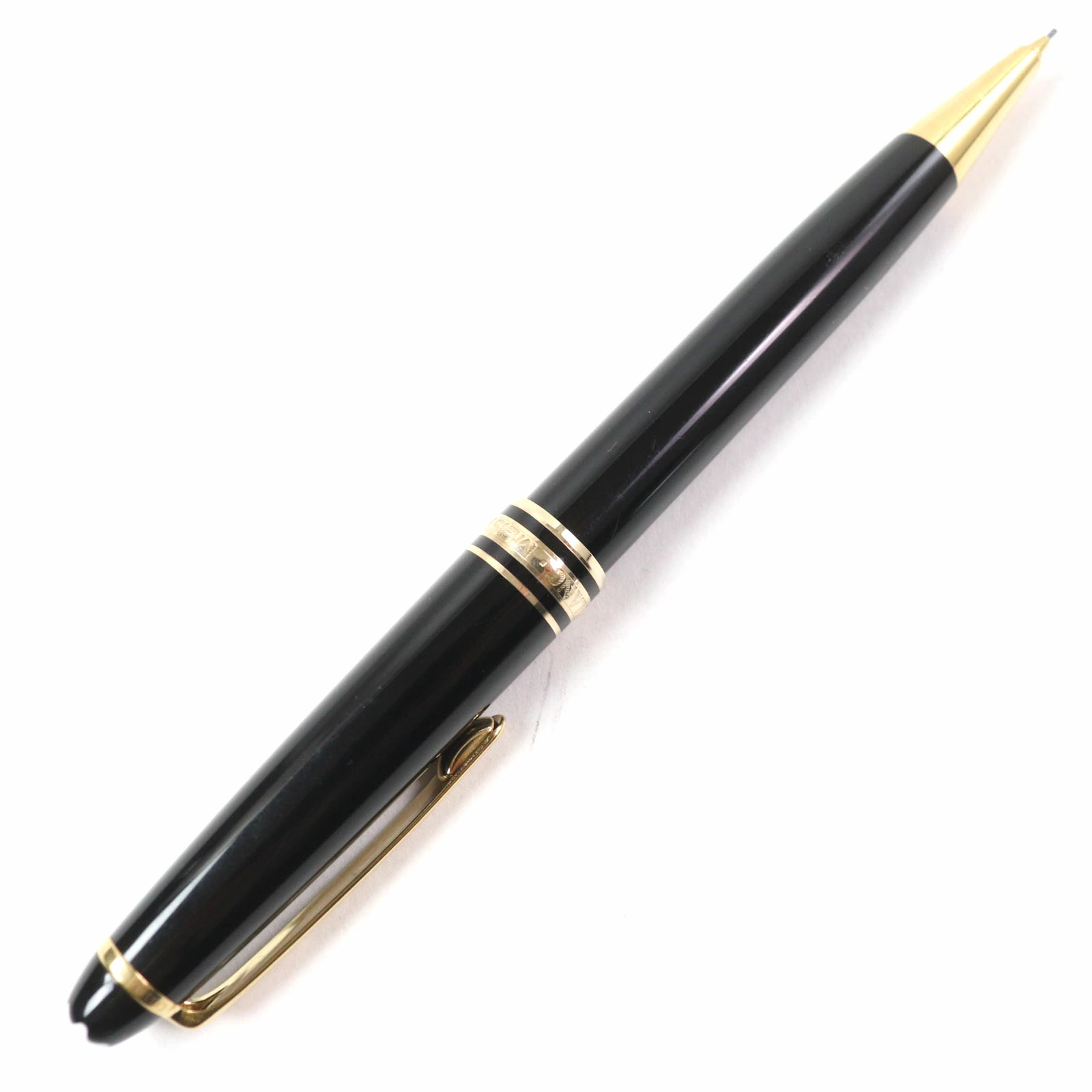 Pre-owned MONTBLANC Meisterstück Classic logo engraved with a white star, twist-style mechanical pencil with a replacement eraser, black and gold, made in Germany, writing confirmed.