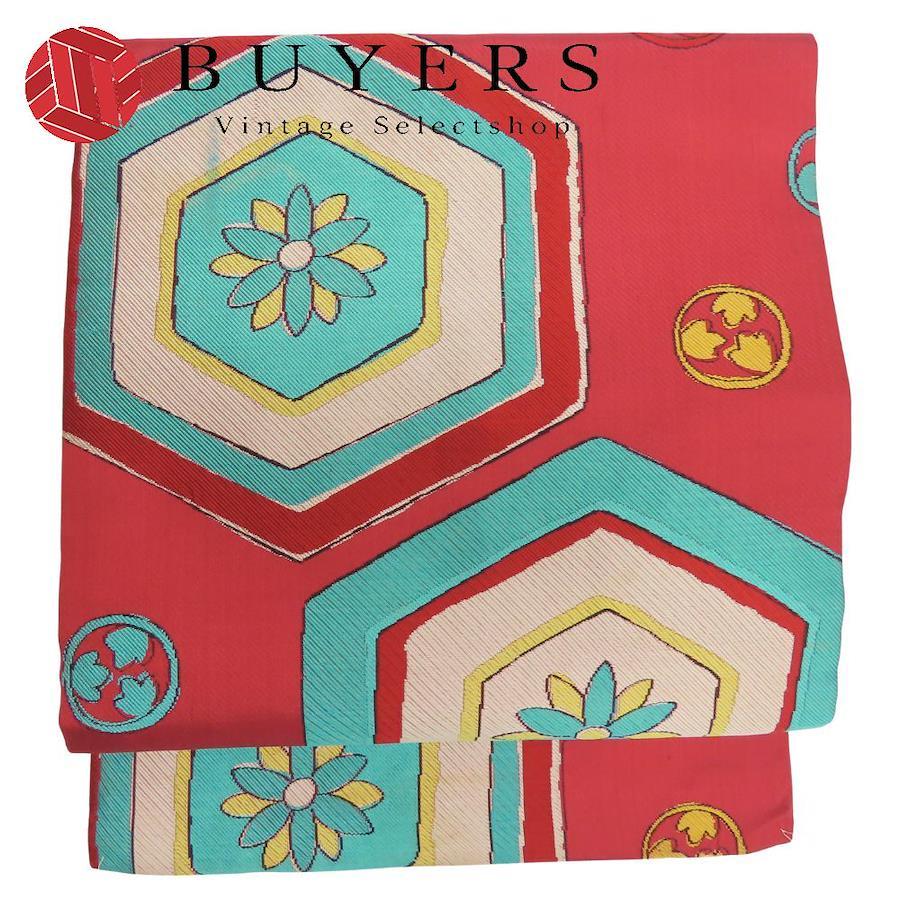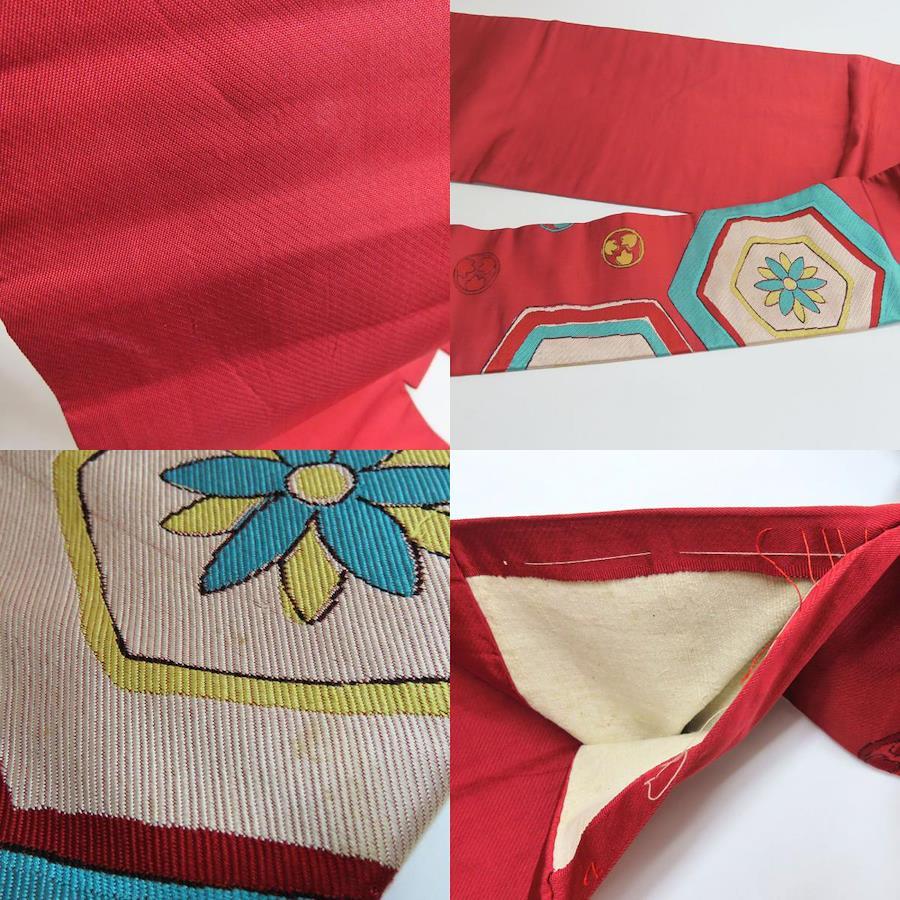 [Pre-owned] Nagoya Obi, 9 inches, Pure Silk (excluding gold and silver threads), Wine Red, Light Blue, Yellow, White, Nagoya Style, Stylish, Kimono, Women's