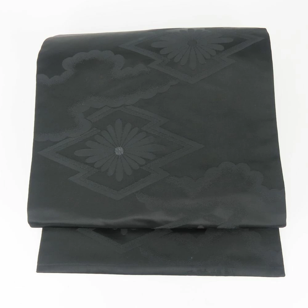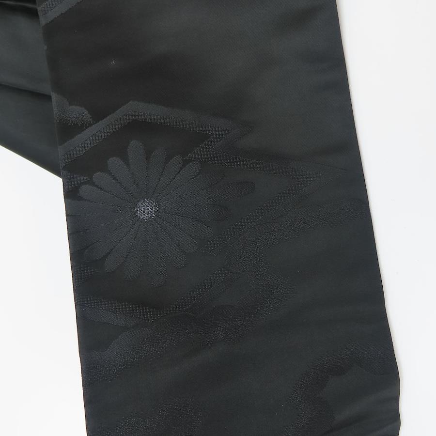 | 品名 | 【中古】 名古屋帯 九寸 正絹(金銀糸除く) ブラック 名古屋仕立て 喪服用 六通柄 レディース 女性 |