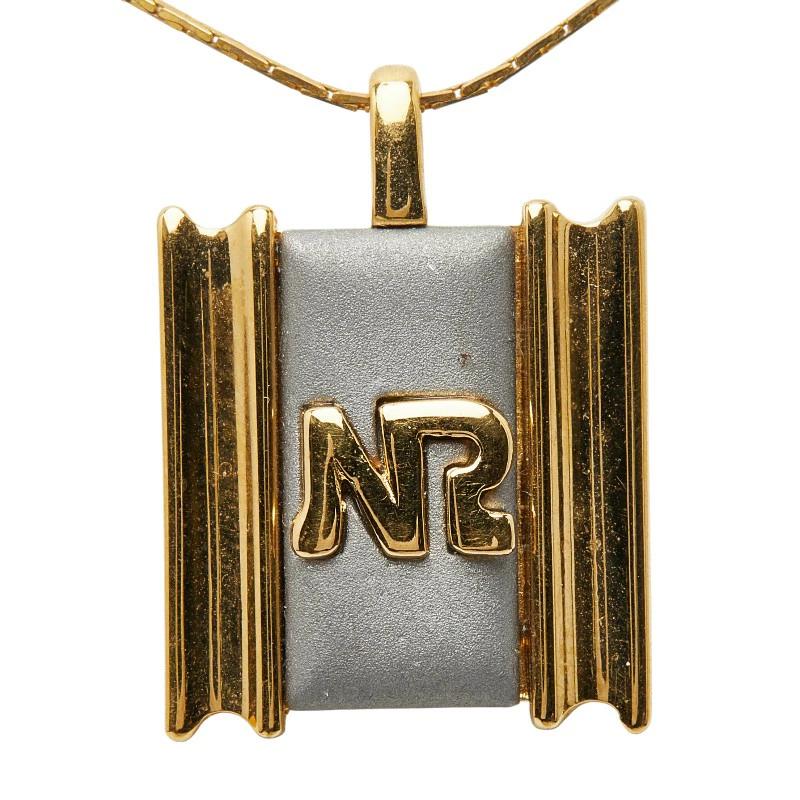 Pre-owned Nina Ricci logo necklace, gold plated, for women.