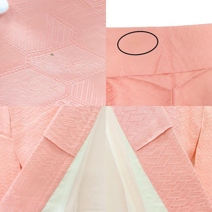 | 品名 | 【中古】 色無地 しつけ糸あり 正絹(金銀糸除く) ピンク 地紋 フォーマル 1つ紋 レディース 女性 |