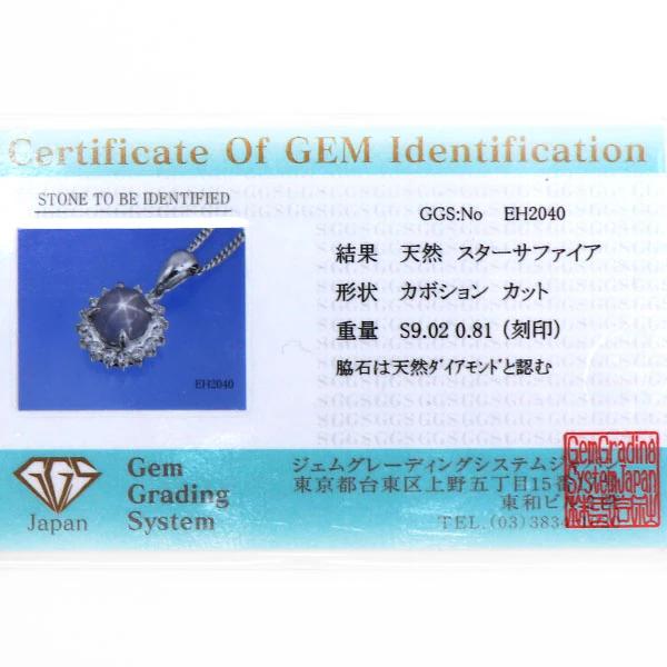 状態:中古品素材:チェーン:プラチナ850、トップ:プラチナ900、スターサファイア:9.02ct、ダイヤモンド:0.81ctペンダントトップサイズ:約1.5cm×1.5cmチェーン長さ:約40cm重さ:約13.586g仕様:スターサファイア