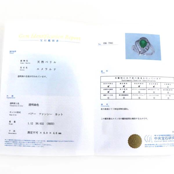 素材:リング:プラチナ900、エメラルド:1.12ct、ダイヤモンド:0.632ct