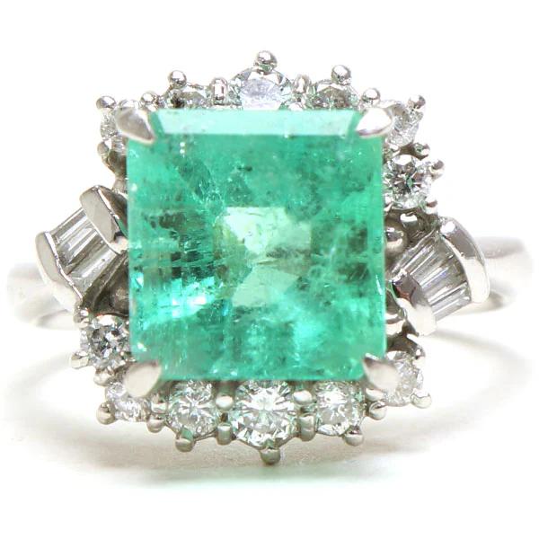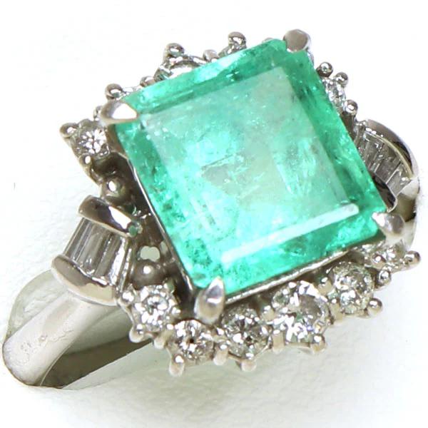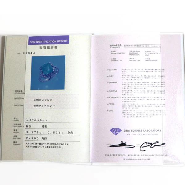 素材:リング:プラチナ900、エメラルド:3.978ct、ダイヤモンド:0.53ct