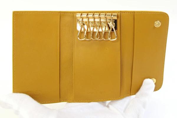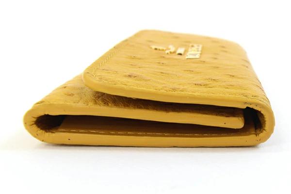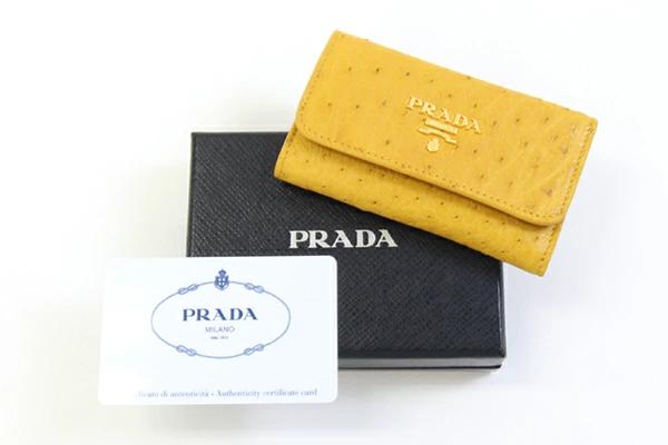 Pre-owned Prada 6-Key Case, Yellow Ostrich Leather, 1PG222, Key Logo, Exotic Leather, Women's, PRADA