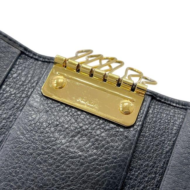 ☆---- 商品について ----☆プラダ 6連 キーケース ec-25203 ブラック NERO 1PG222 美品 レザー 中古 62 E PRADA ロゴ金具 黒 ホック 鍵 ホルダー ゴールド金具 定番 人気 シンプル キーホルダー 革 メンズ レディース 男女兼用 6ホック 鍵入れ ホック式 ブランド 本物 鑑定済み