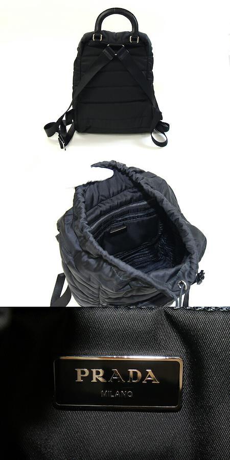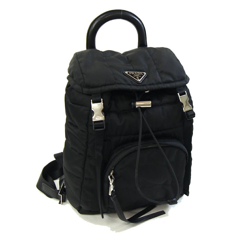プラダバックパック1BZ002ブラックナイロンレザー中古リュック三角ロゴ鞄レディースキルティングPRADA