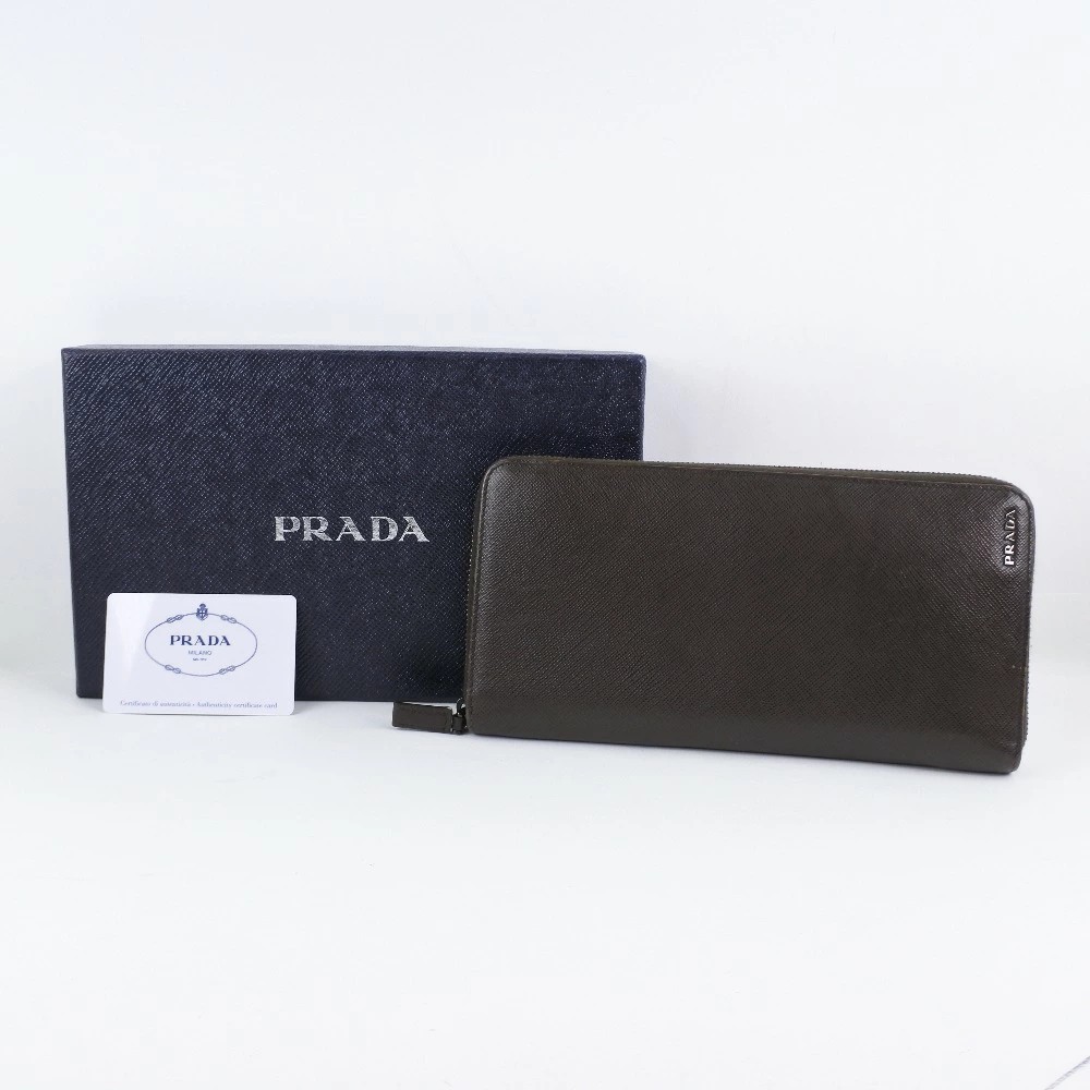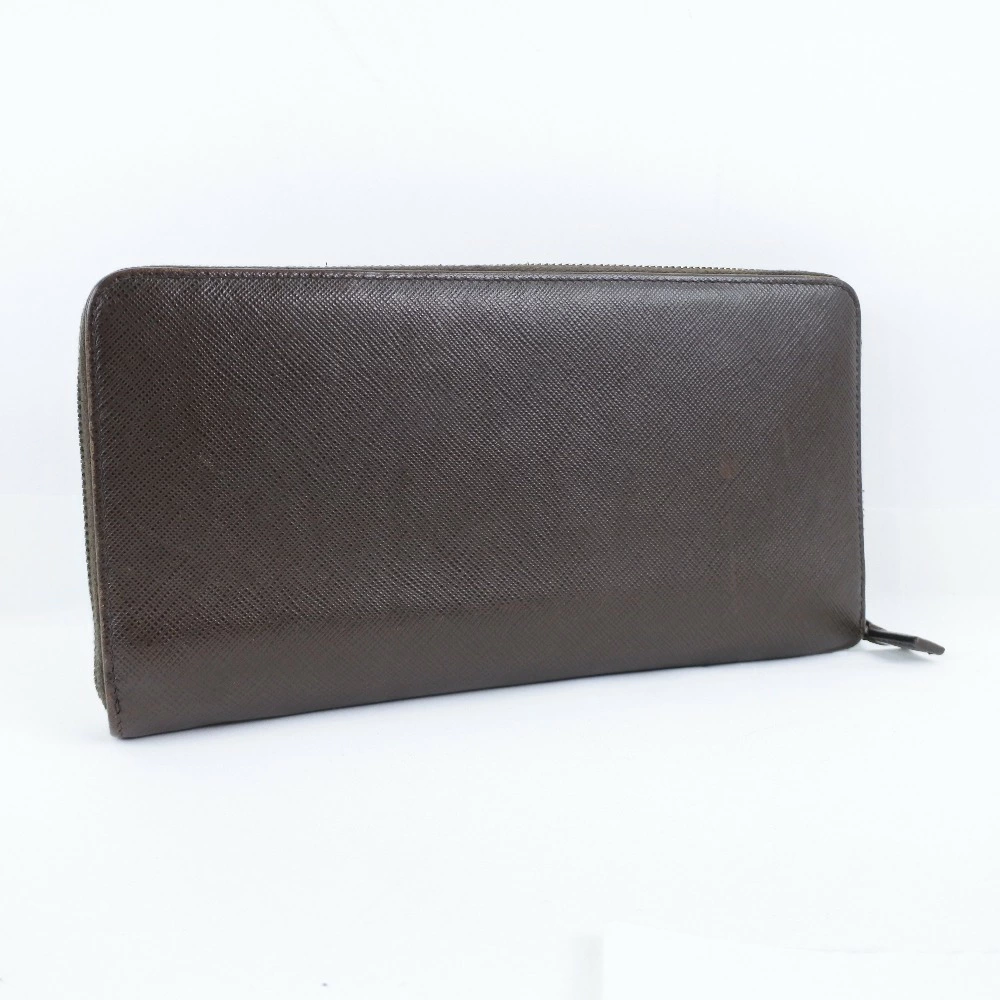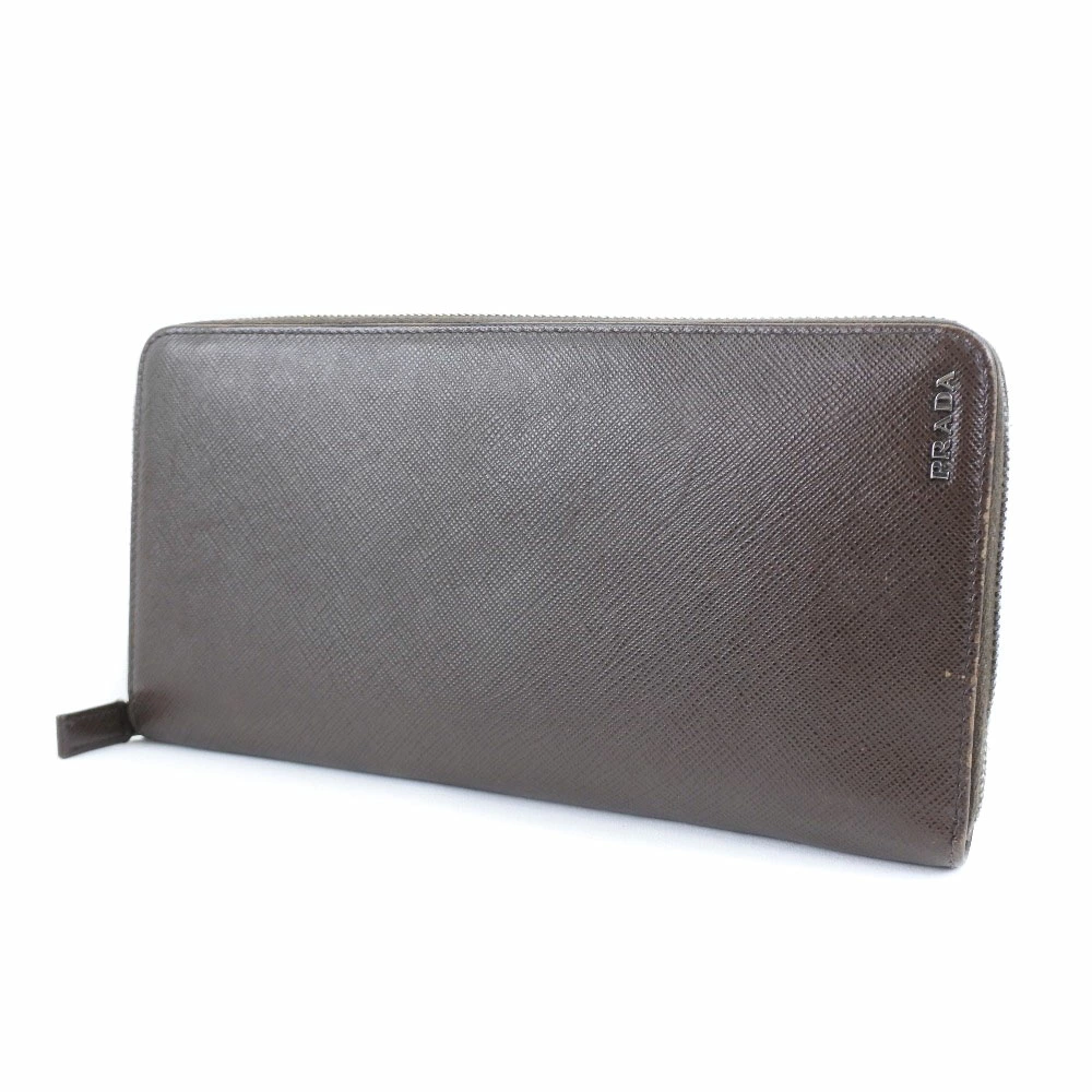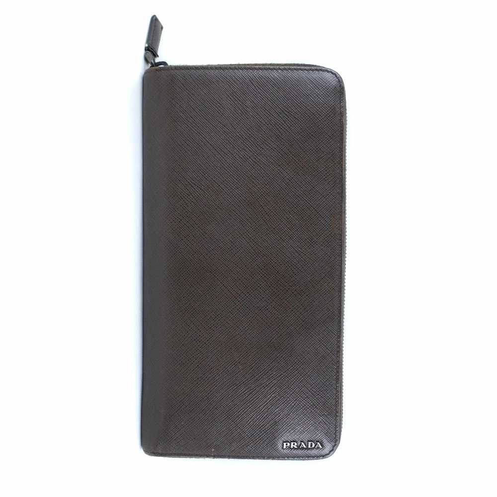 Pre-owned Prada long wallet with zip-around closure, 2ML220, Saffiano CAFFE+NERO, dark brown, women's.
