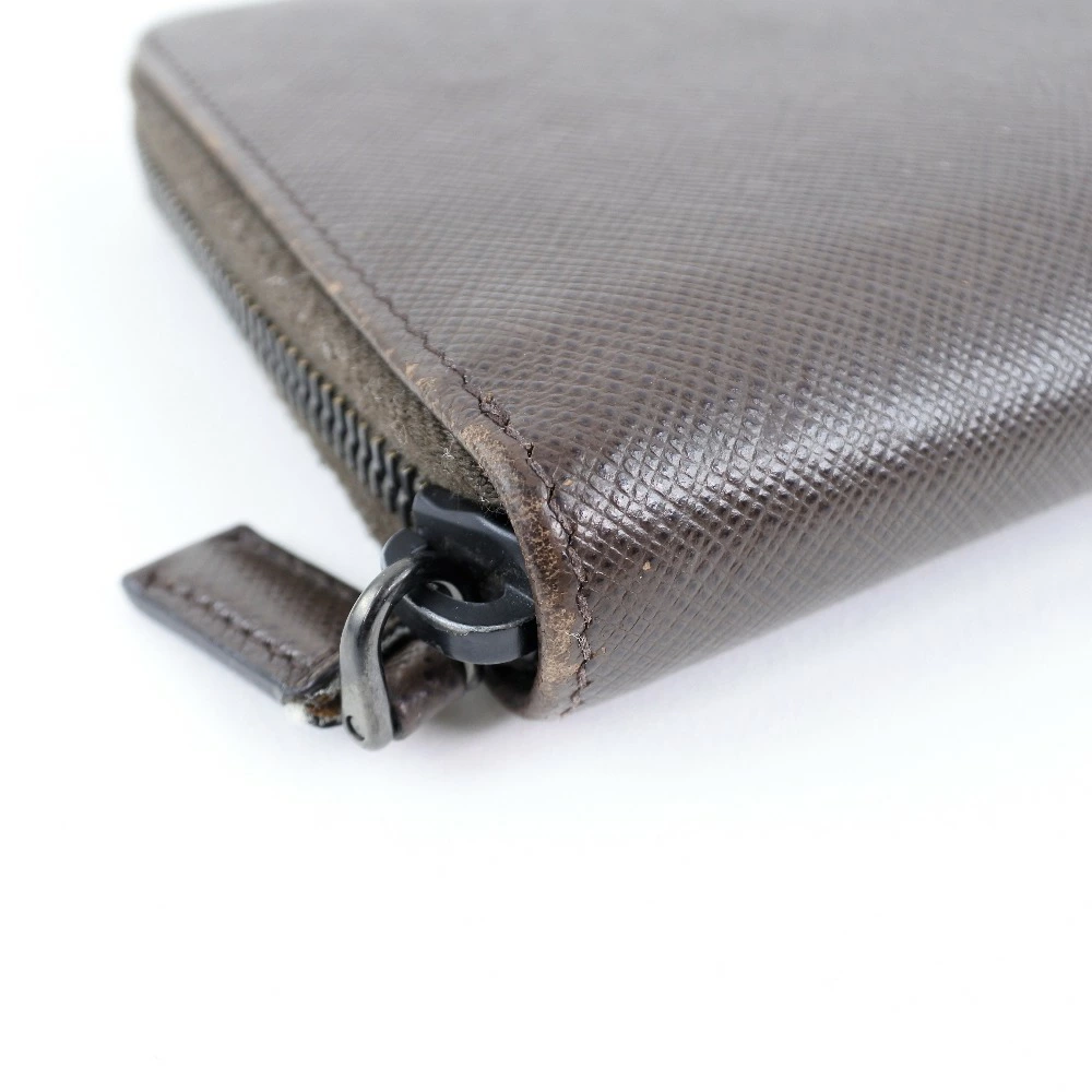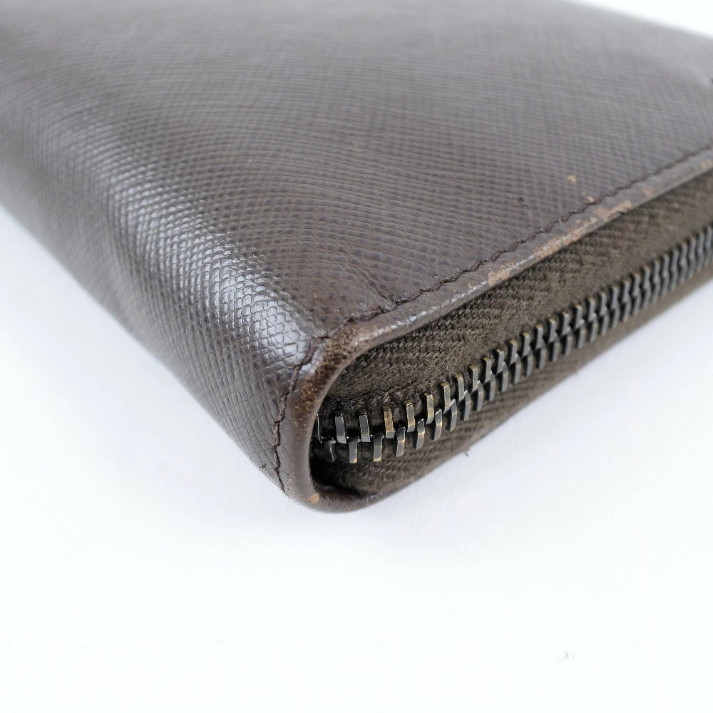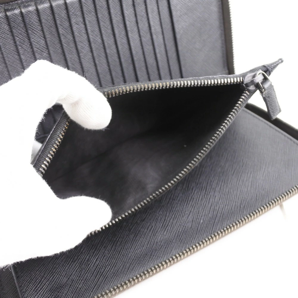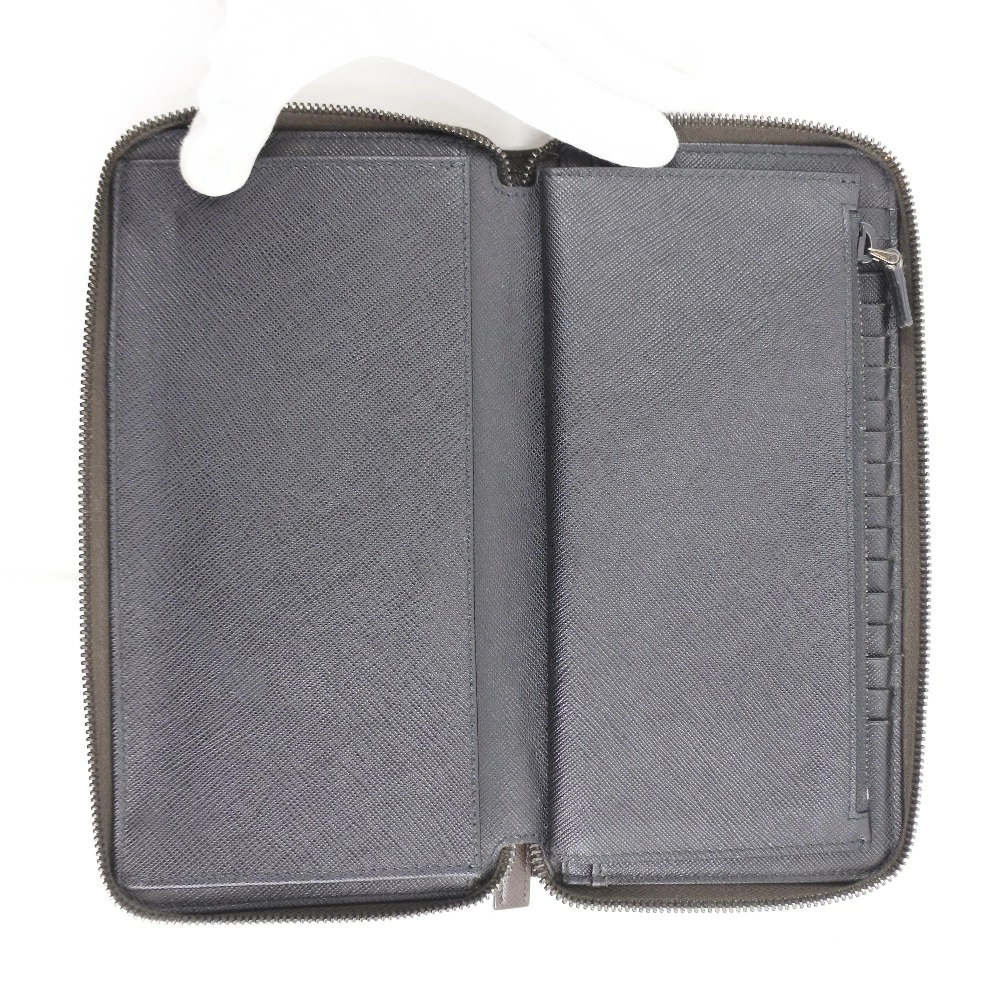 Pre-owned Prada long wallet with zip-around closure, 2ML220, Saffiano CAFFE+NERO, dark brown, women's.