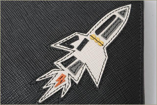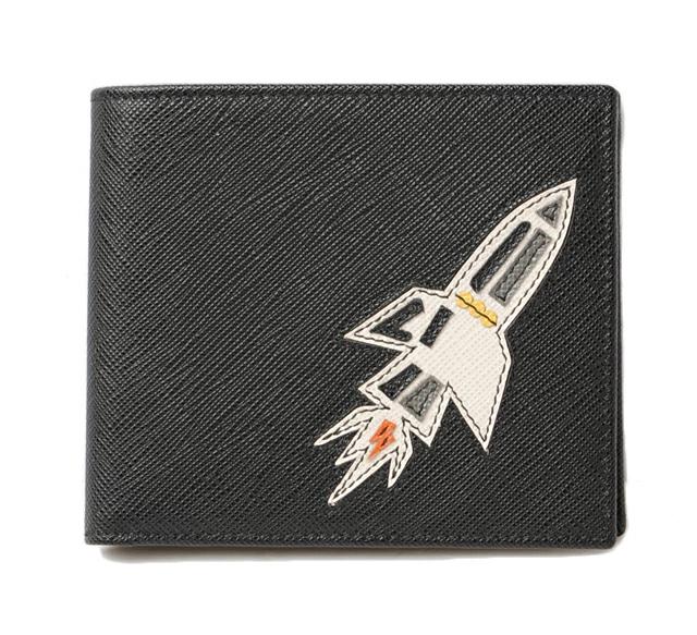 プラダより、メンズ向けの折財布です。遊び心あふれるデザインで、右端にはパッチワーク調のロケット、背面にはロゴがデザインされ、存在感があります。お札入れと、コインケースを分けて持つ方にもおすすめです。スリムなフォルムでバッグの中やポケットの中でもかさばりません。贈り物にも、オススメです。