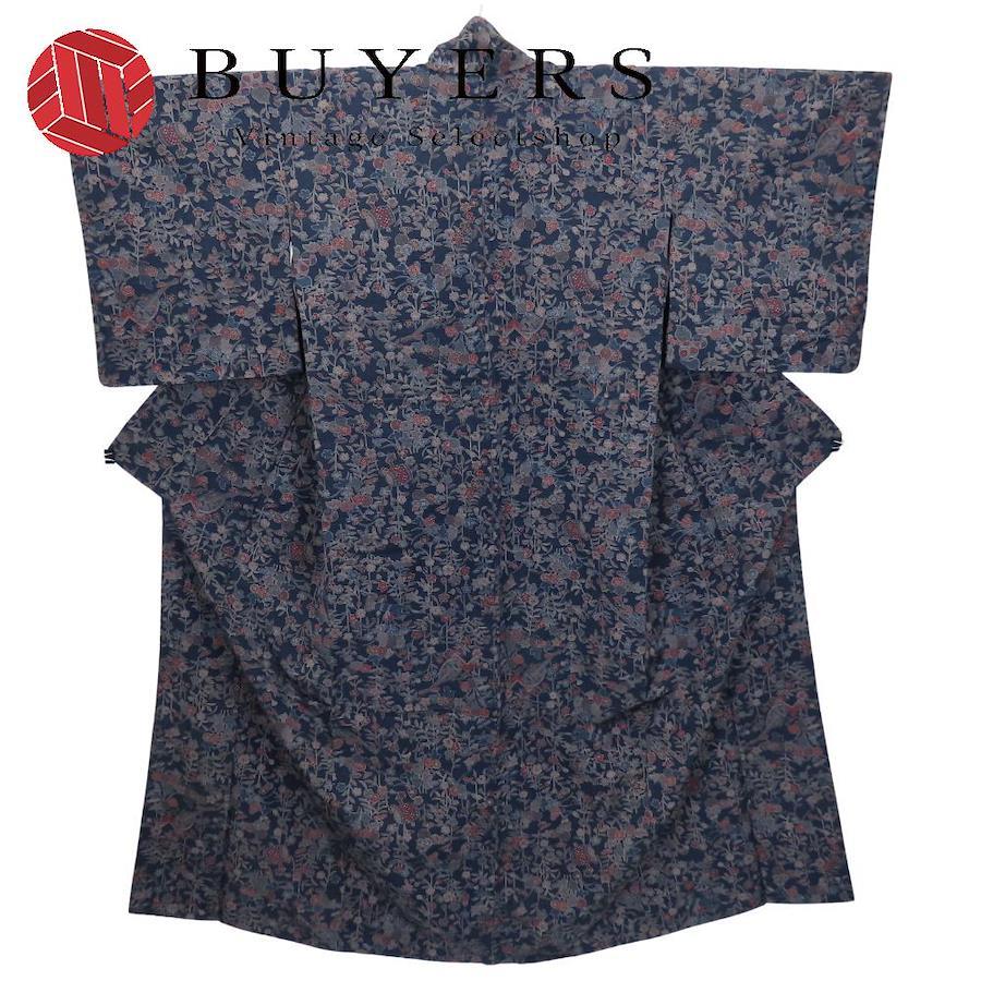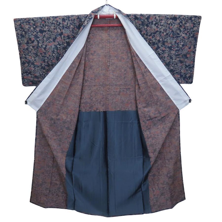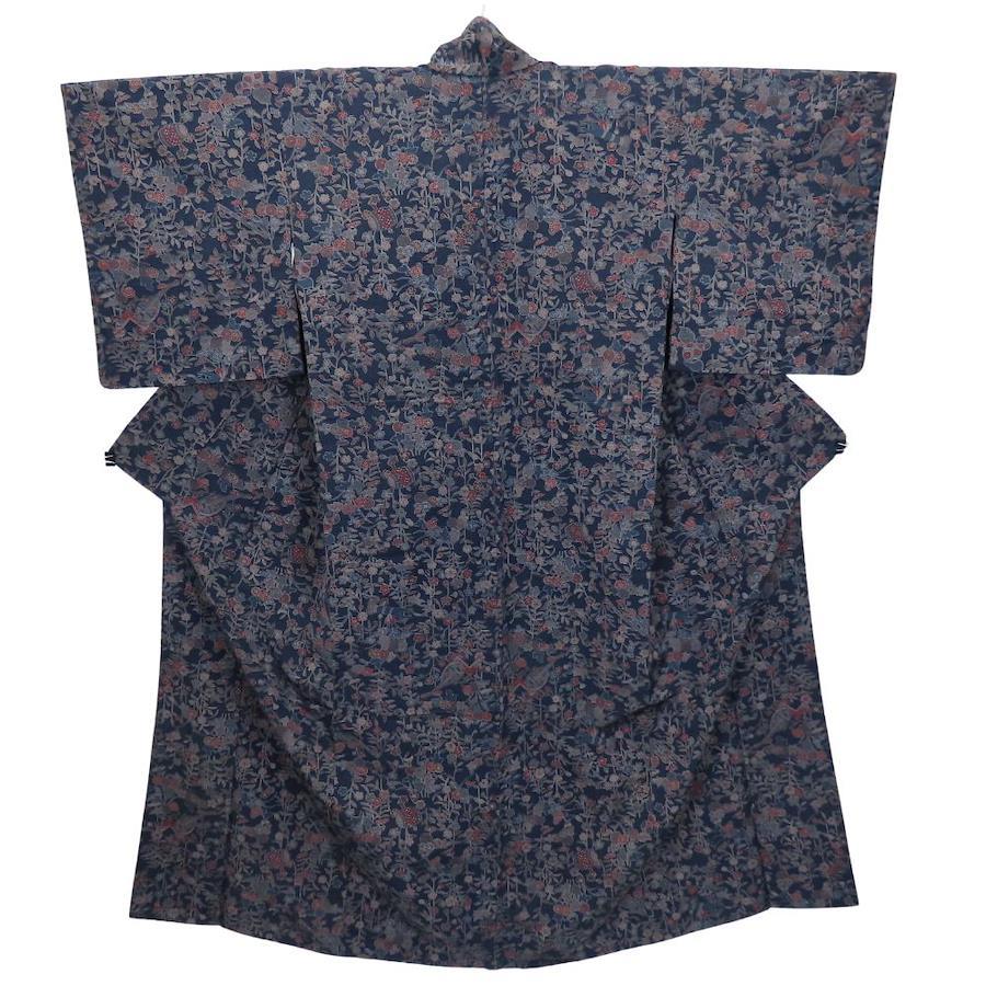 | 品名 | 【中古】 紬 正絹 ネイビー 単衣 更紗模様 レディース 女性 |