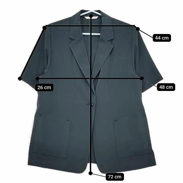 | 実寸サイズ | 肩幅:約44cm 着丈:約72cm 身幅:約48cm 袖丈:約26cm ※記載以外のサイズが合わないことを理由とした返品はできませんので、 記載部分以外で実寸サイズの気になる箇所があれば必ず購入前にご質問ください。 |