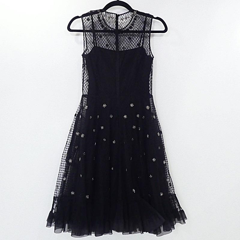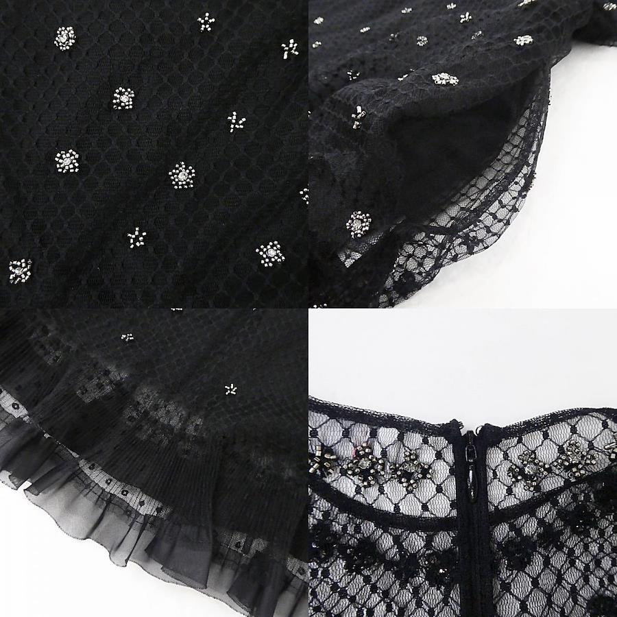 【モデル名】 ドットメッシュラインストーンフラワー刺繍
