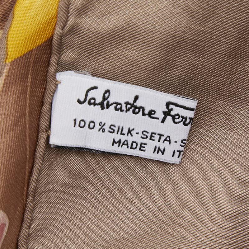 サルヴァトーレフェラガモ フラワー 花柄 スカーフ ブラウン マルチカラー シルク レディース Salvatore Ferragamo 【中古】