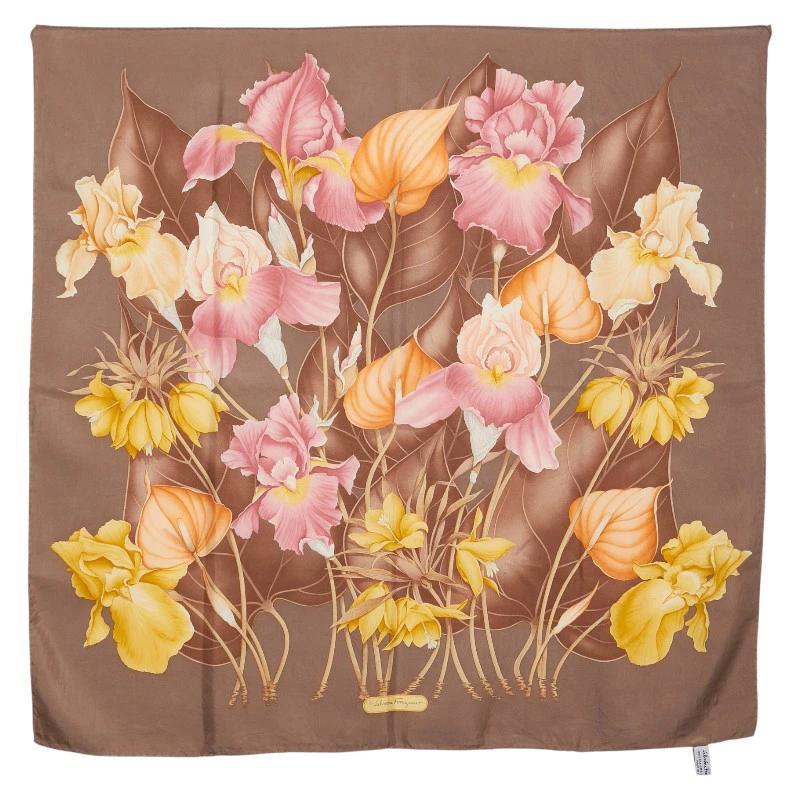 Pre-owned Salvatore Ferragamo floral print scarf in brown and multicolored silk. Women's.