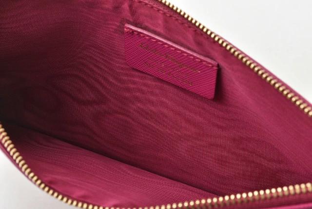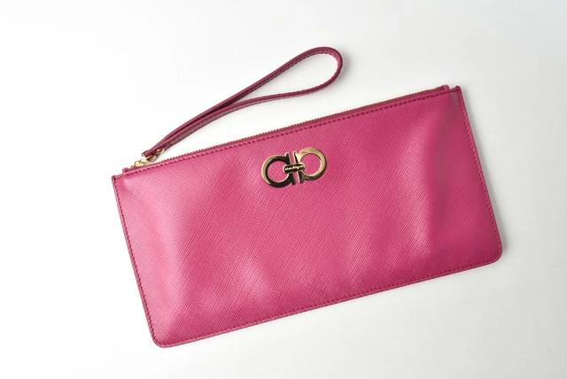フェラガモより、フラットポーチです。ハンドストラップがついており、手首を通せてクラッチにも小物入れとしても使えます。ガンチーニがアクセントになり、高級感があります。