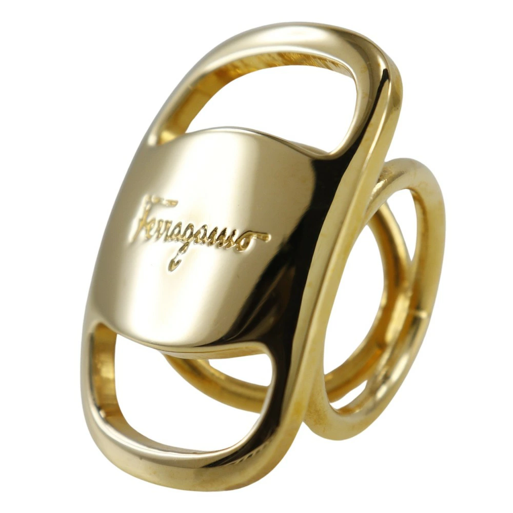 Pre-owned Salvatore Ferragamo Vara scarf ring, gold-plated, for women.