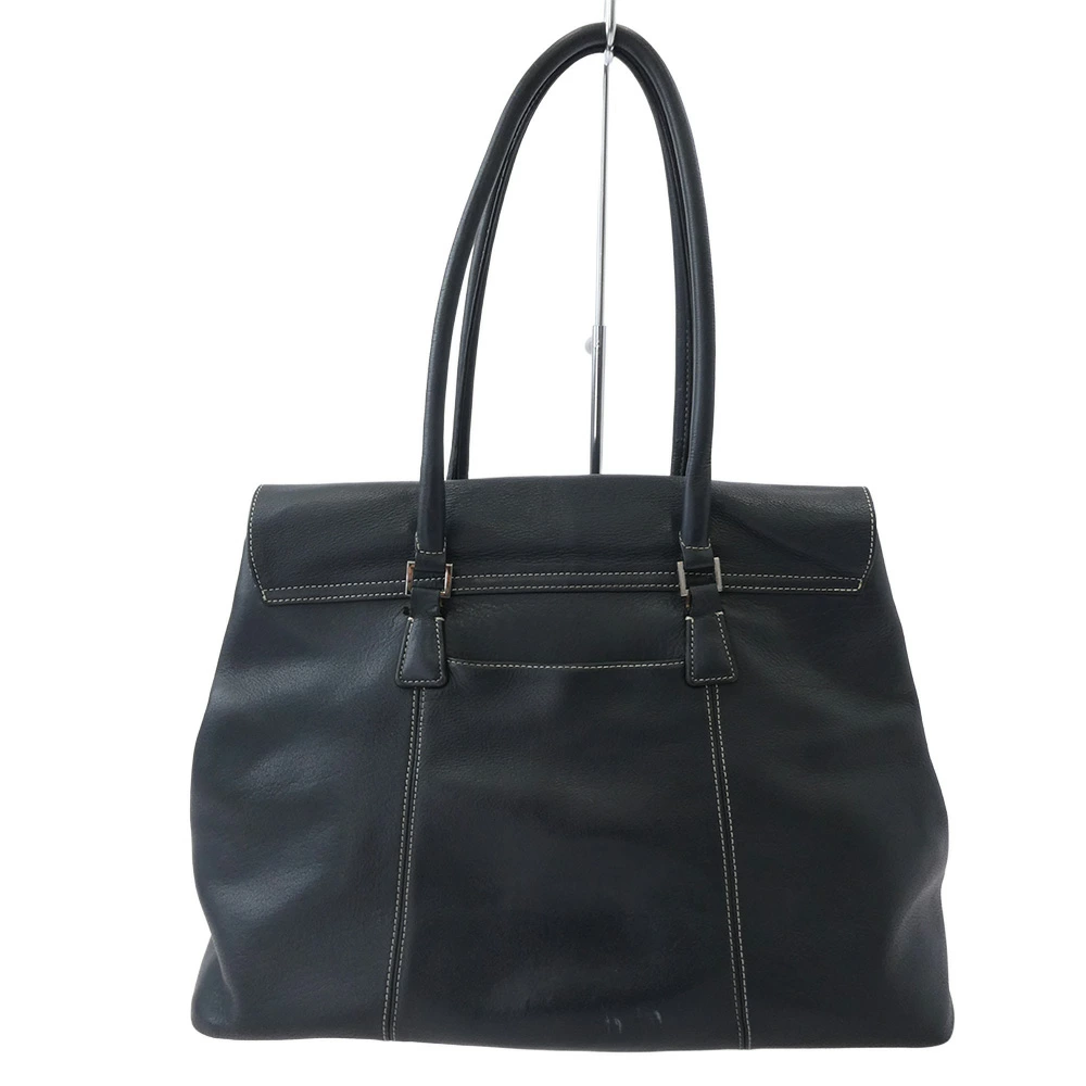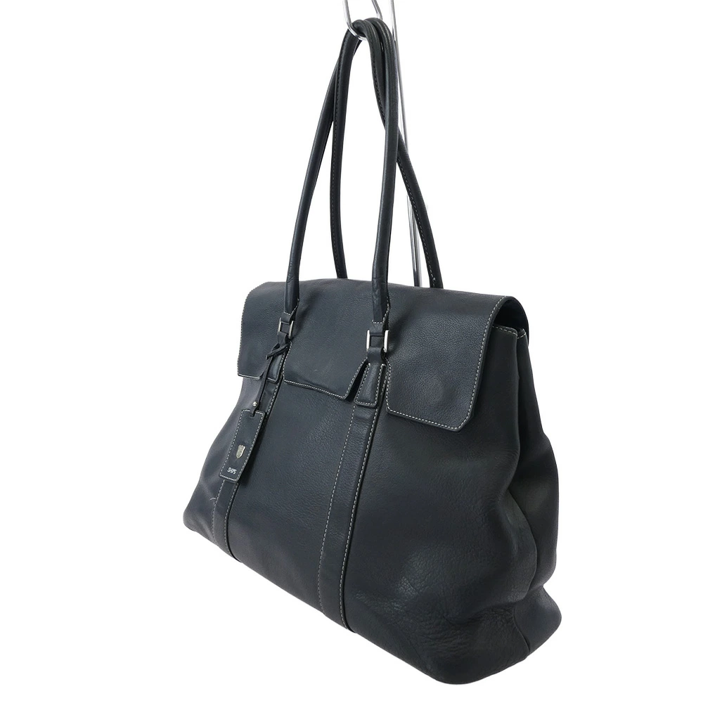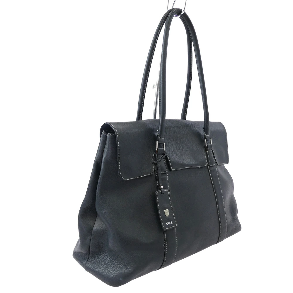 Pre-owned SHIPS leather flap tote bag in black for men
