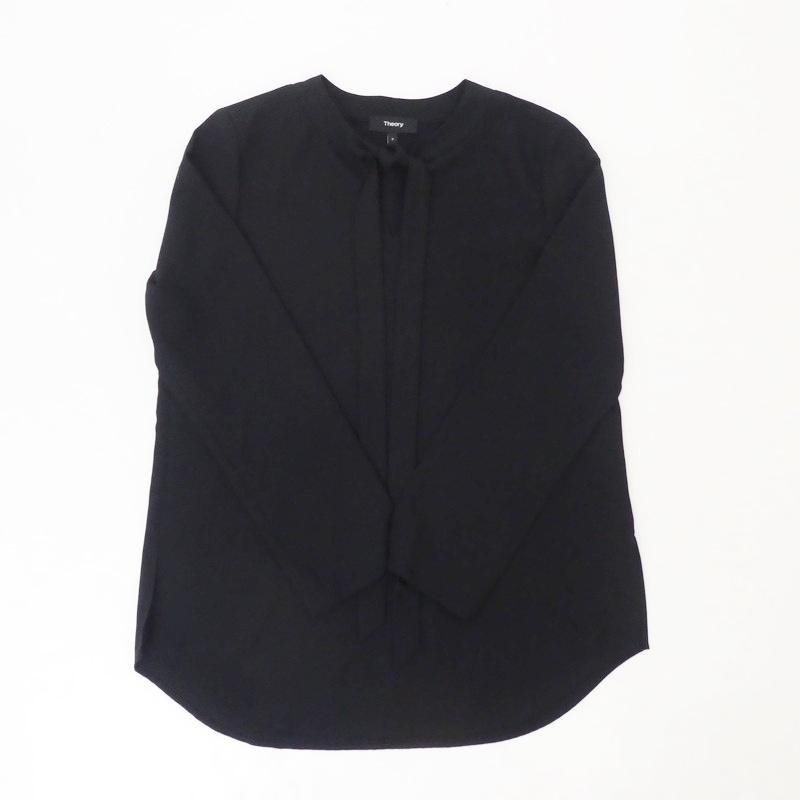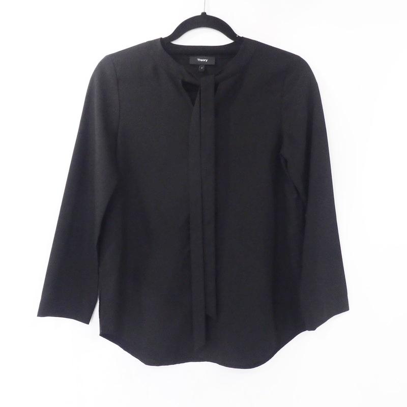 Pre-owned Theory Washable Bowtie Blouse, Black, 10-0108201